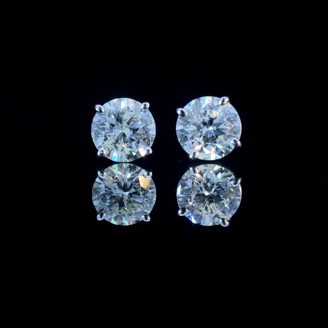 Timeless beauty meets modern opulence in these stunning diamond studs. Crafted from 14kt white gold, these classic earrings boast 3.03ctw of glittering round diamonds, for a luxurious and sophisticated look that will never go out of style.