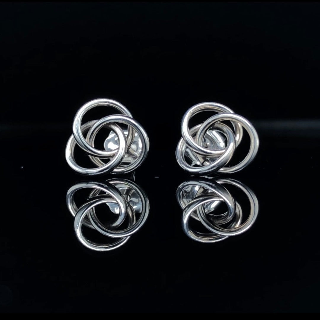 These luxurious 14kt white gold love knot stud earrings bring a timeless elegance to any look. Crafted with intricate details and shining brightly, they make a sophisticated and subtle statement. Perfect for formal occasions or everyday wear, these earrings capture the beauty of a classic design.