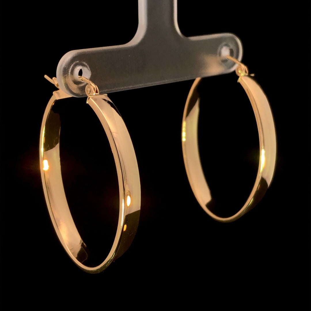 Crafted from the finest 14k yellow gold, these oval-shaped flat front hoop earrings offer the perfect balance of sophisticated luxury and classic style. Their timeless beauty demands attention and provides a subtle hint of sophistication to any ensemble. Indulge in the elegance of these exquisite earrings and make any look complete.