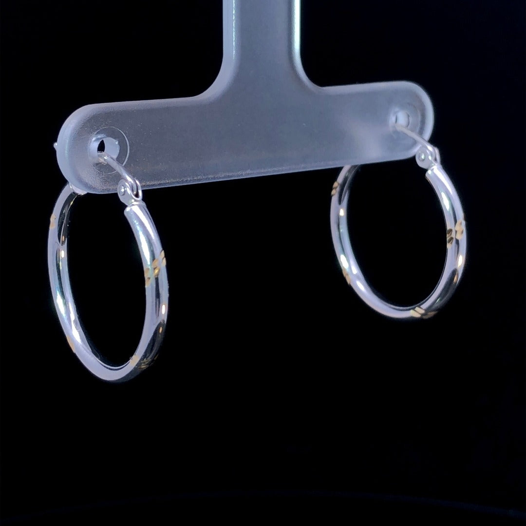 Sophisticated and exclusive, these 14kt 2-tone hoop earrings are the perfect addition to any luxe look. Boasting a white gold hoop trimmed in yellow gold diamond cuts, they add a tasteful bit of sparkle that will garner admiration and elevate any ensemble.