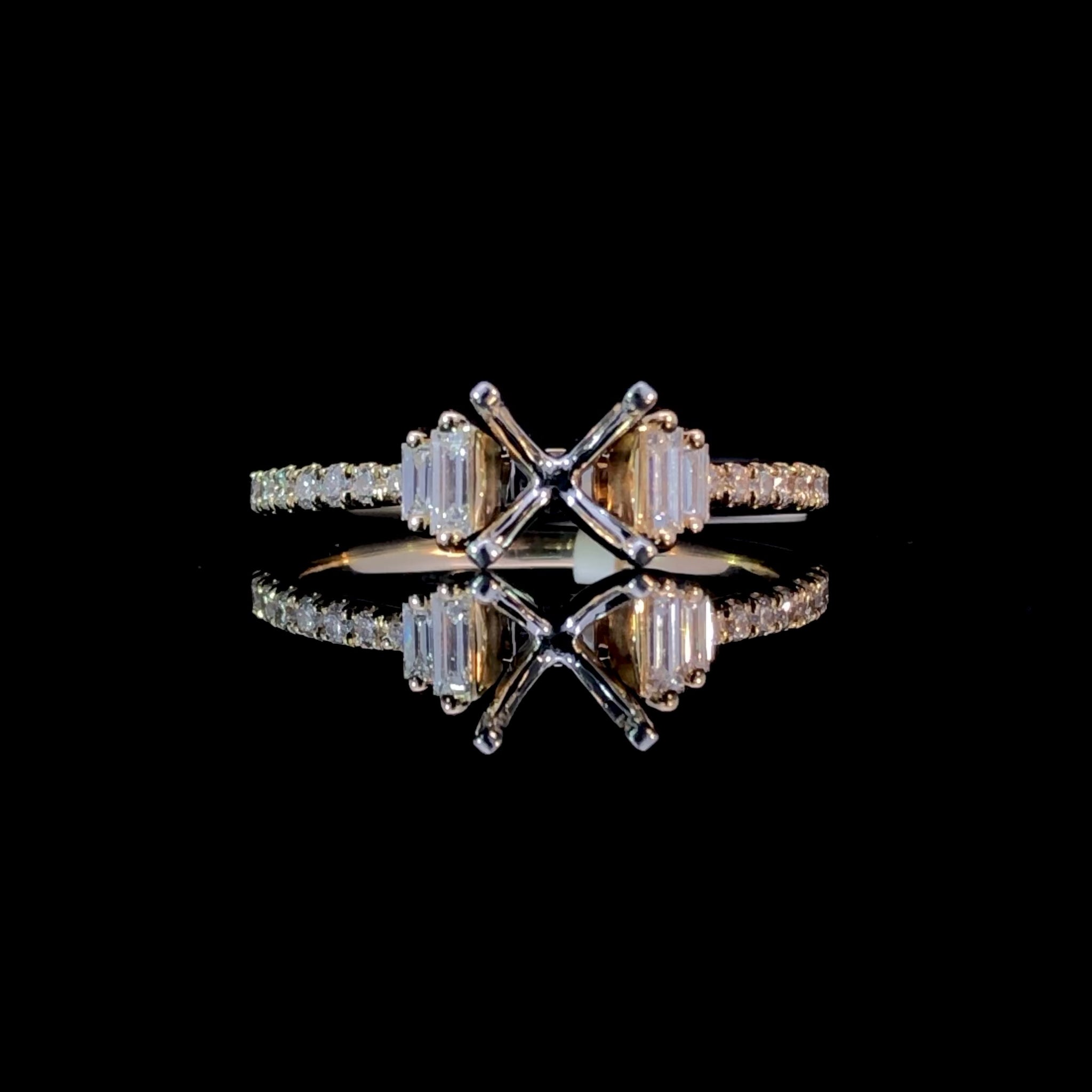 This stunning 14kt yellow gold diamond semi mount glitters with .34ctw of beautiful baguette and round diamonds. Make it your own by adding the center stone of your choice! An exquisite piece of jewelry sure to elevate your look with effortless elegance. Price is for the semi mount only. Center stone will be added at an additional charge. This ring is a size 7. If that size is not a perfect fit, first time sizing is free at the time of purchase. Additional sizing fees may apply.