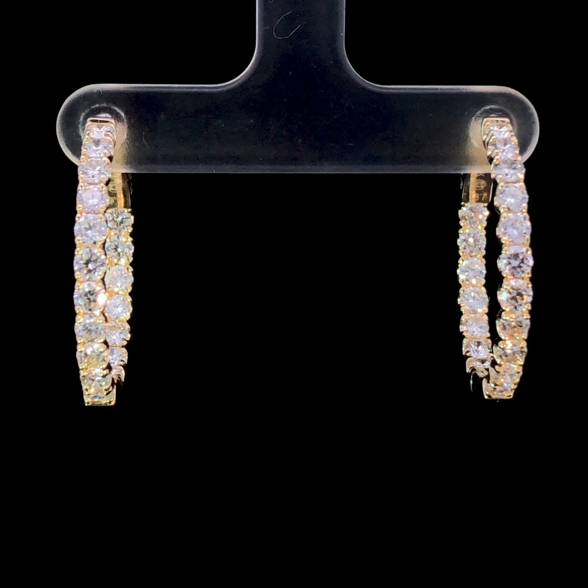 Enchanting and elegant, these 2.91ctw diamond hoop earrings will add a beautiful sparkle to any look. Crafted with 14kt yellow gold and set with luminous round diamonds inside and out, these hoops will be a luxurious addition to your jewelry collection.