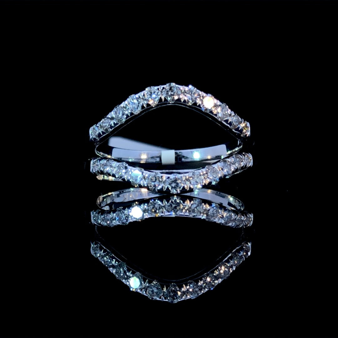 Make an unforgettable statement with this 14kt white gold ring guard! Featuring .80ctw of round diamonds, the curved design adds a magnificent sparkle to your jewel collection. Upgrade your look and make memories with this dazzling piece.
