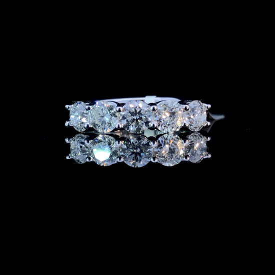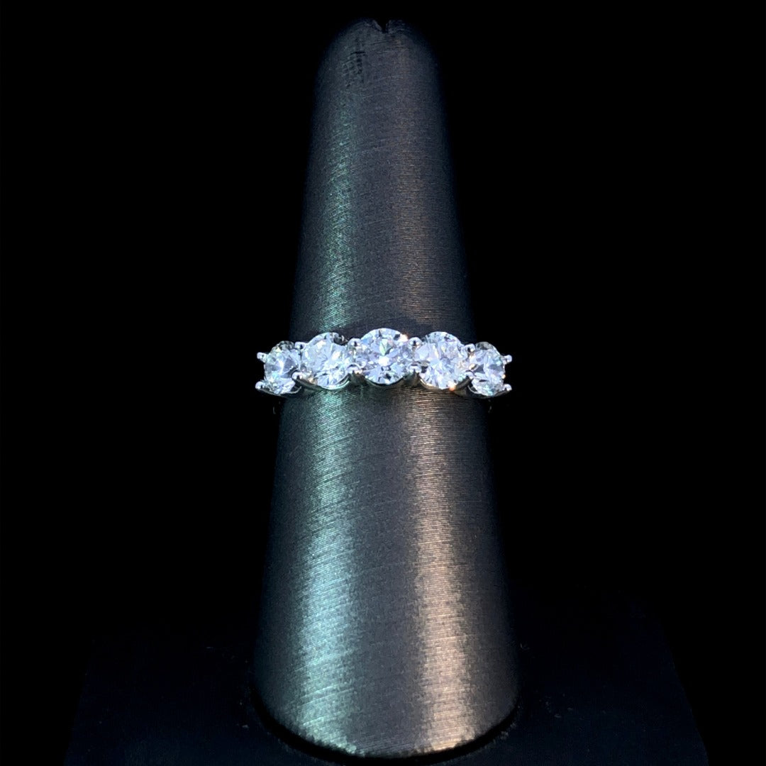 This stunning platinum band will dazzle any jewelry lover. Crafted to perfection, 5 eye-catching diamonds totaling 2.05ctw will make an exquisite addition to any collection. Let this gorgeous piece of art sparkle on your finger! This ring is a size 7.5. If that size is not a perfect fit, first time sizing is free at the time of purchase. Additional sizing fees may apply.