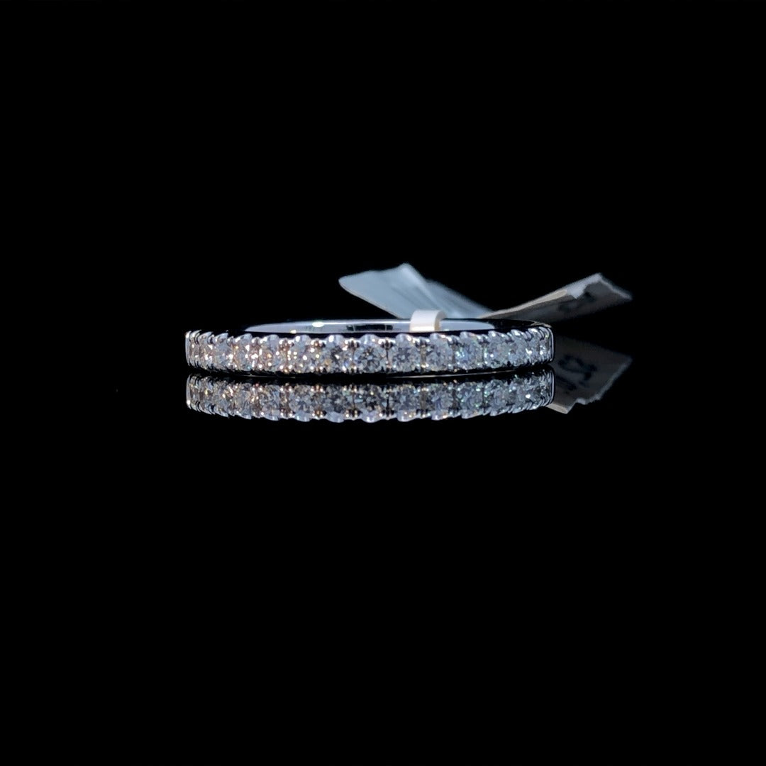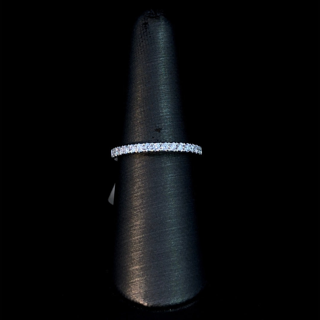 Enhance your elegant style with this stunning diamond band. Featuring a classic design, this band is adorned with .27ctw of round diamonds set in luxurious 14kt white gold. Elevate your look with this timeless piece. This ring is a size 7. If that size is not a perfect fit, first time sizing is free at the time of purchase. Additional sizing fees may apply.
