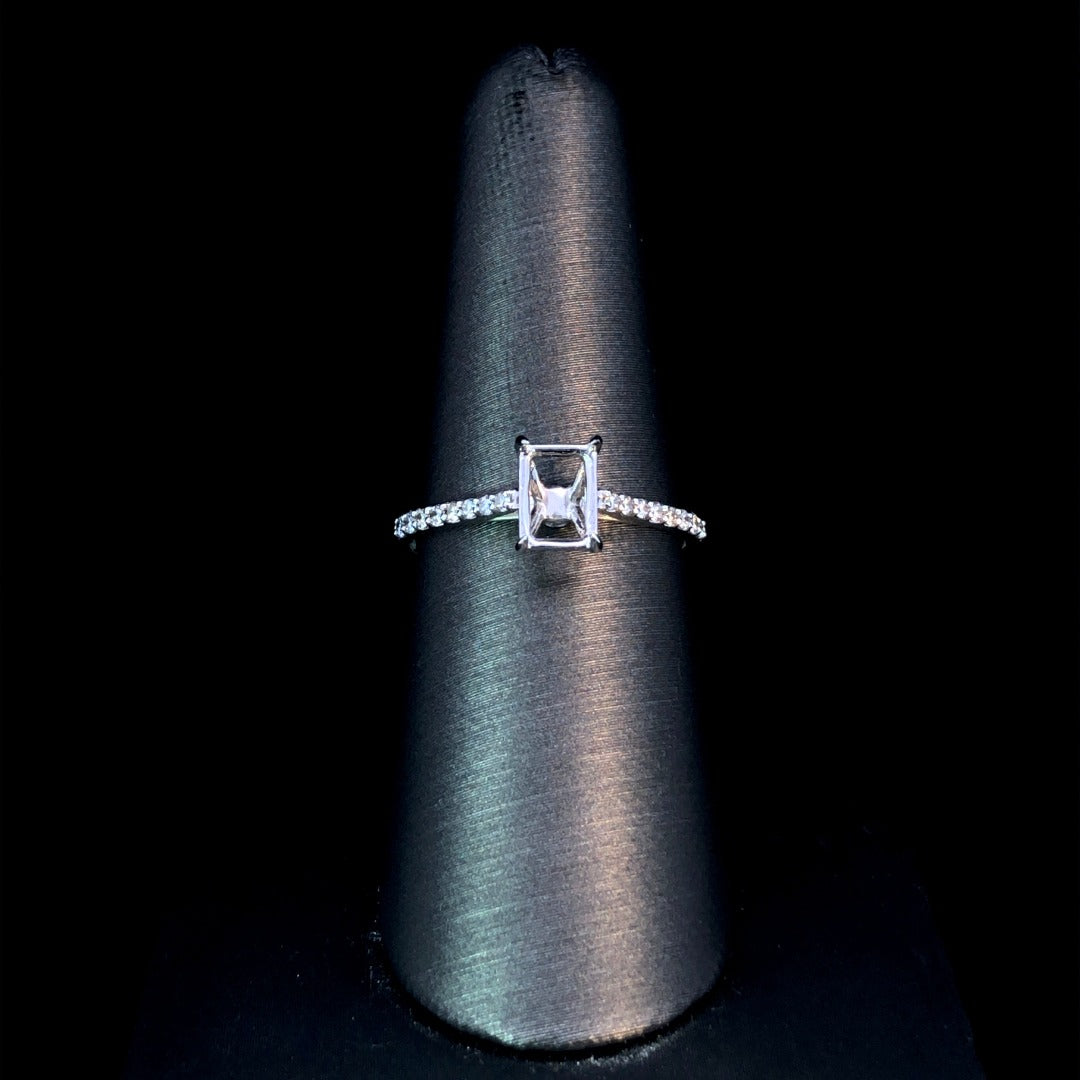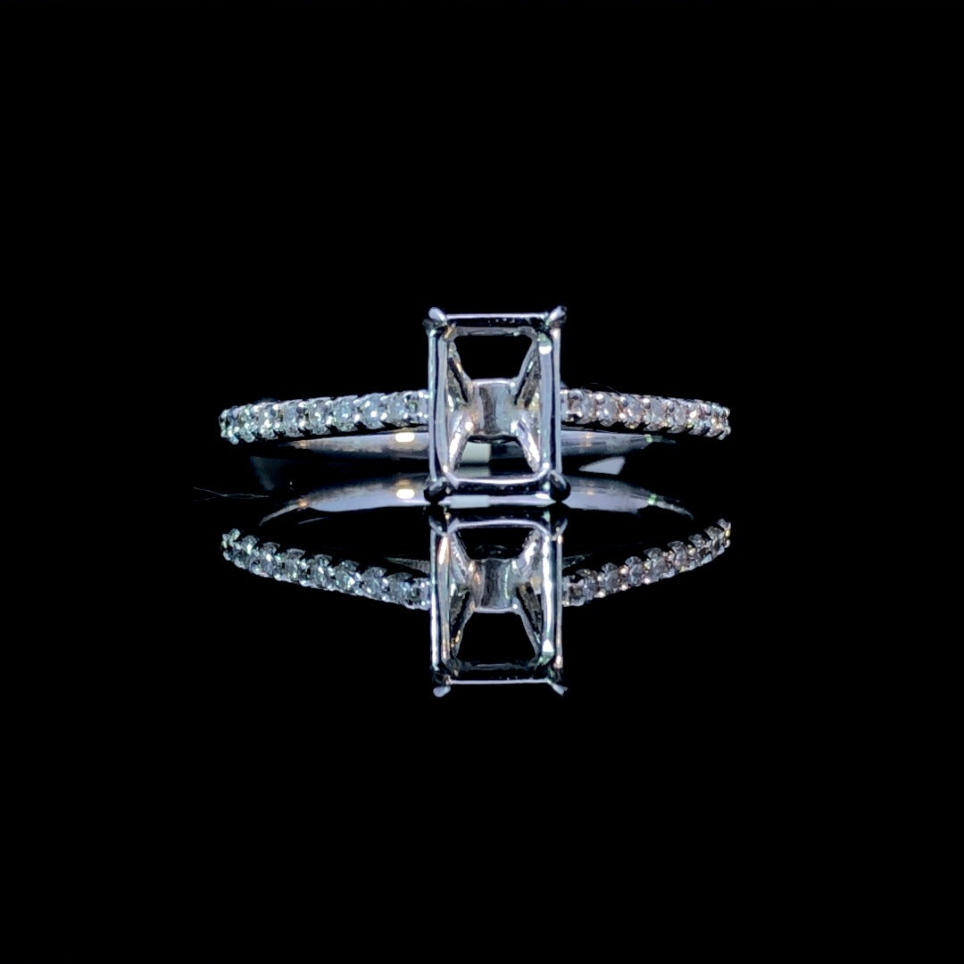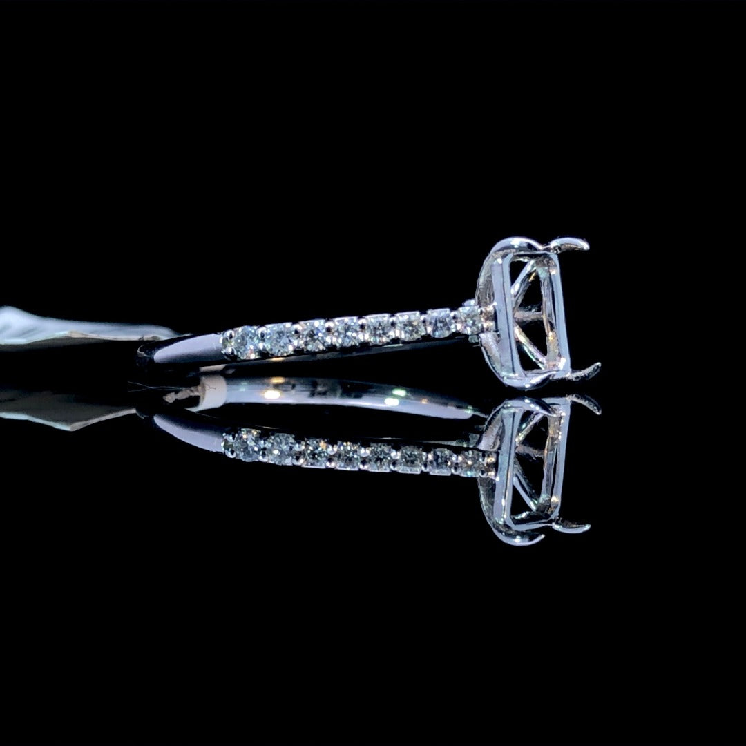 Elevate your style with our stunning semi mount. Crafted in 14kt white gold, it boasts a timeless design adorned with .22ctw of sparkling round diamonds. Customize it with a center stone of your choice from our exquisite selection for a truly unique and luxurious touch. Price is for the semi mount only. Center stone will be added at an additional cost. This ring is a size 7. If that size is not a perfect fit, first time sizing is free at the time of purchase. Additional sizing fees may apply.