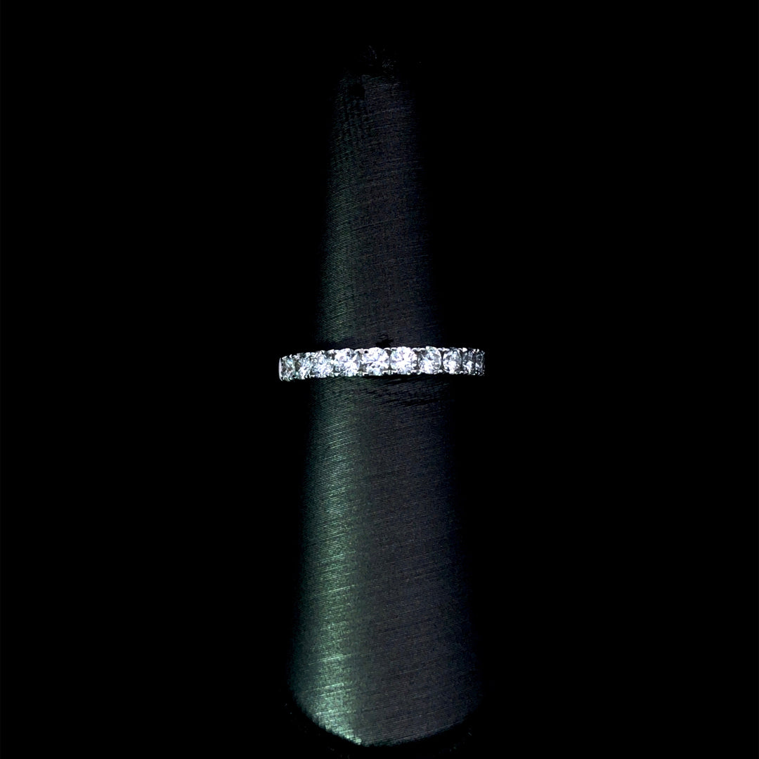 Add a touch of elegance to your jewelry collection with this stunning diamond band. Crafted in 14kt white gold, it boasts .71ctw of sparkling round diamonds. A must-have accessory for any occasion. This ring is a size 6.5. If that size is not a perfect fit, first time sizing is free at the time of purchase. Additional sizing fees may apply.