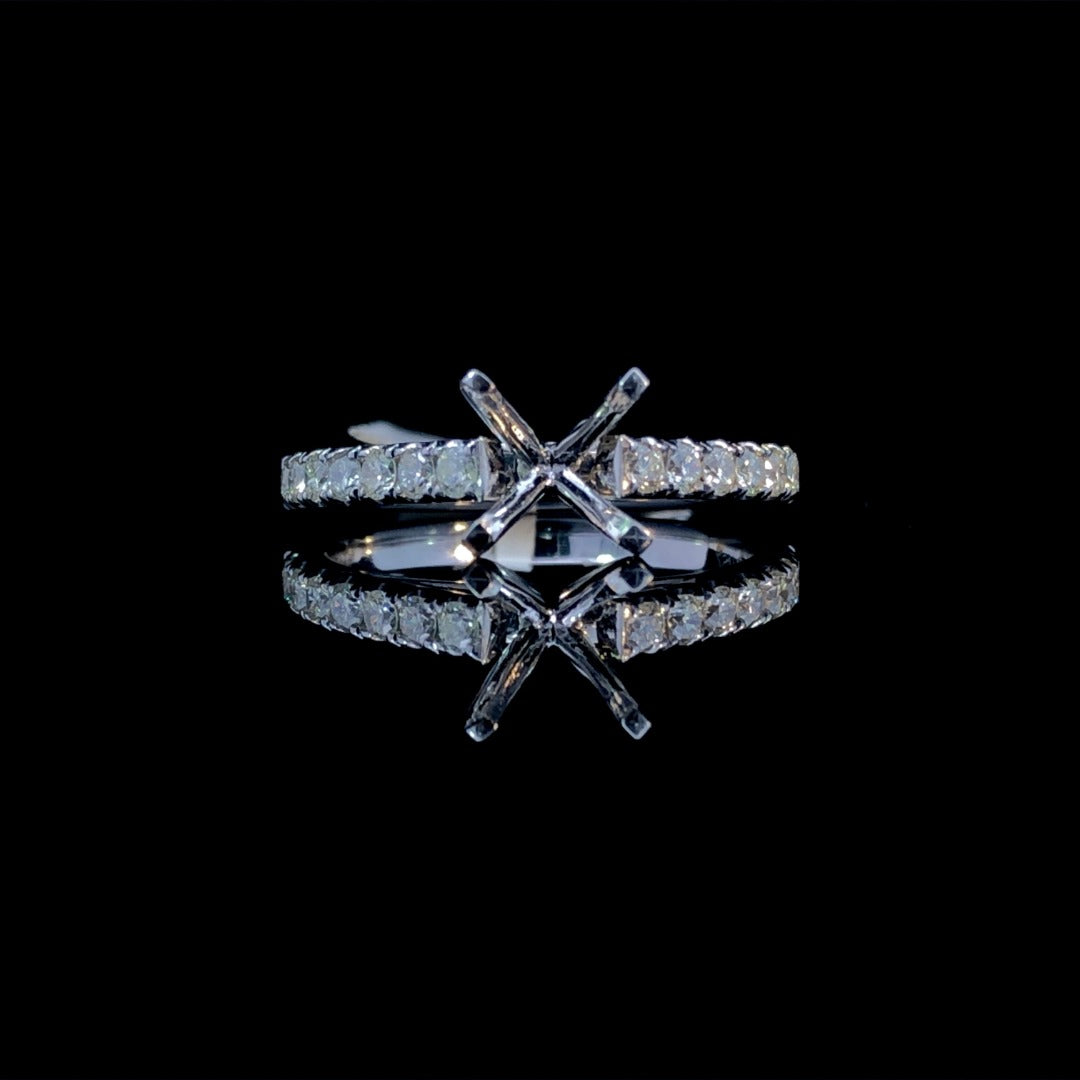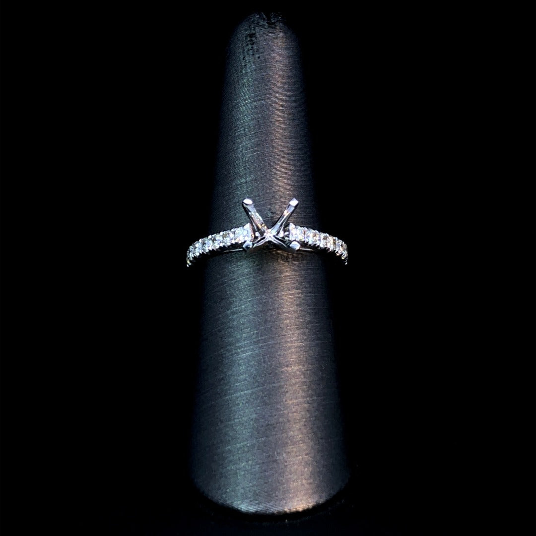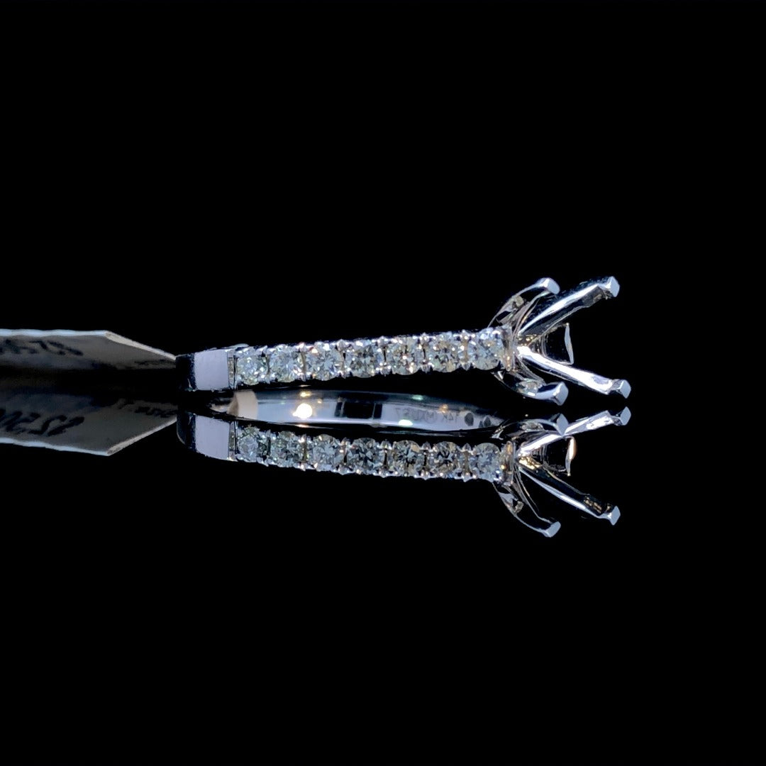 Elevate your style with our exquisite diamond semi mount. Featuring .44ctw of round diamonds on a 14kt white gold band, this classic piece exudes elegance. Customize it with your choice of center stone from our unbeatable selection for a truly unique and stunning look. Price is for the semi mount only. Center stone will be added at an additional cost. This ring is a size 7. If that size is not a perfect fit, first time sizing is free at the time of purchase. Additional sizing fees may apply.