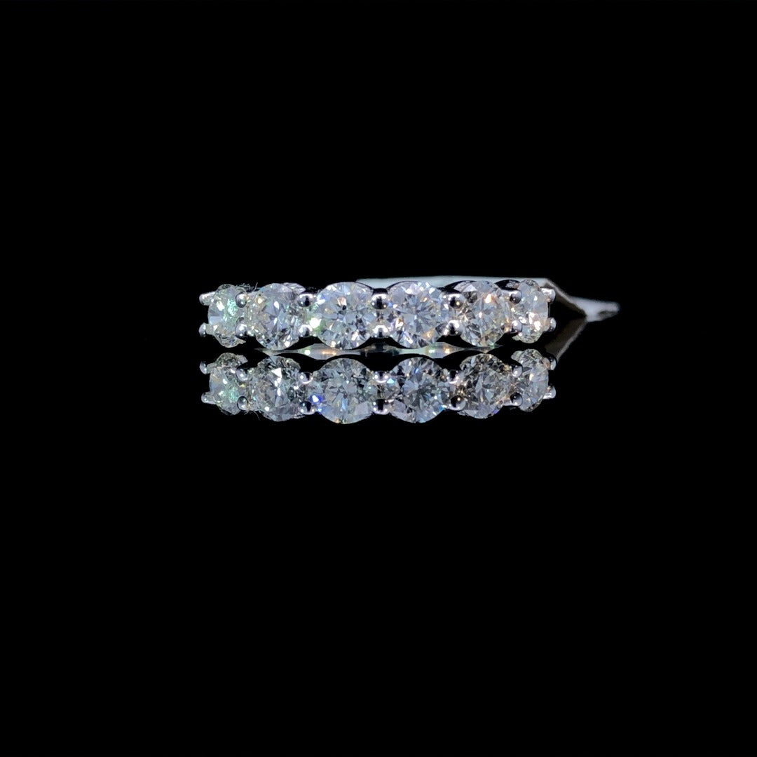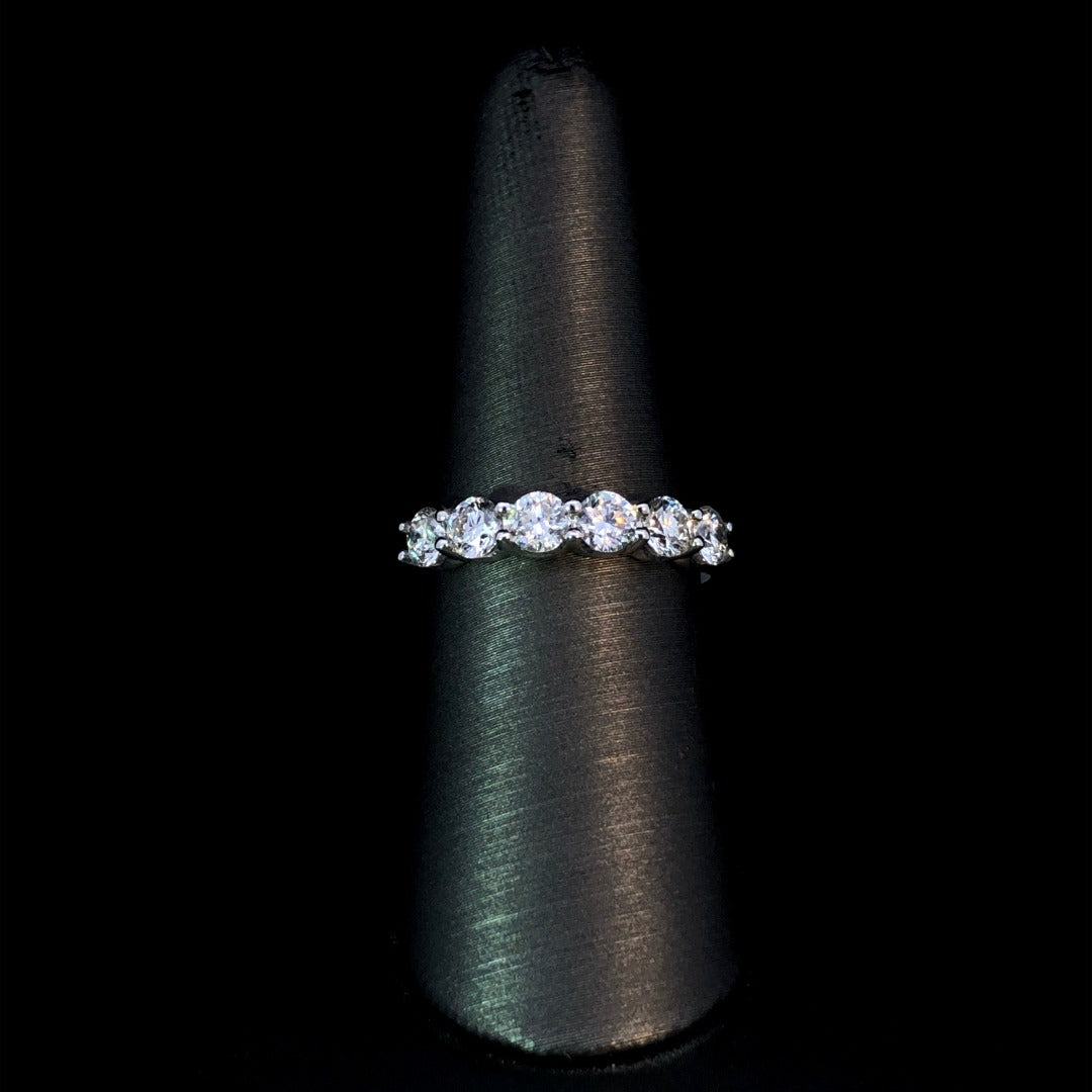 Elevate your jewelry collection with our exquisite diamond band. Made from platinum and adorned with an impressive 1.27ctw of round diamonds, this stunning band is a true statement piece. Add a touch of luxury and elegance to any outfit with this beautiful addition. This ring is a size 7.25. If that size is not a perfect fit, first time sizing is free at the time of purchase. Additional sizing fees may apply.