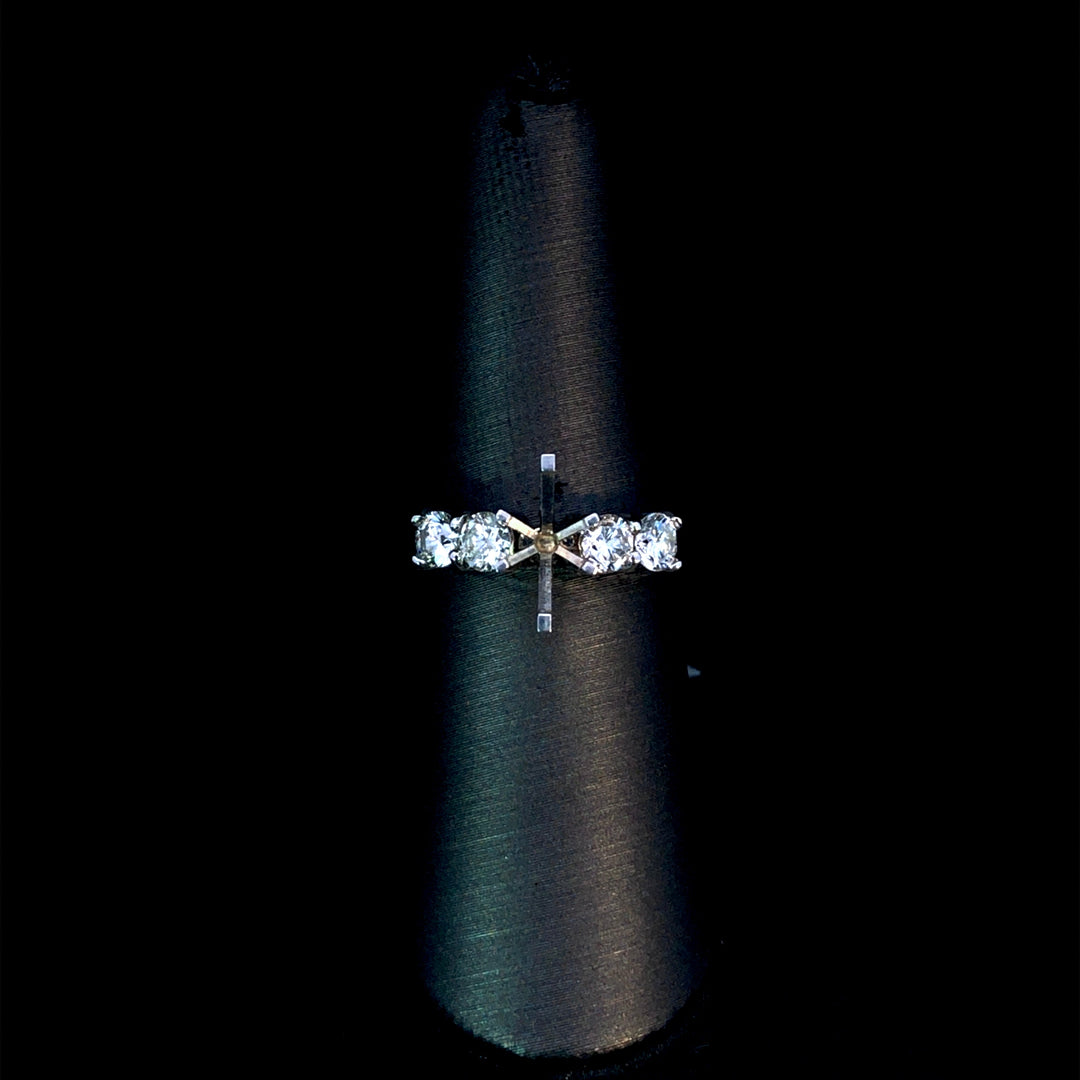 This stunning diamond semi mount features four round side diamonds totaling .96 ctw, elegantly set in 14kt white gold. Customize your ring by choosing a center stone from our unmatched selection of loose stones to complete this beautiful and personalized piece. Price is for the semi mount only. Center stone will be added at an additional cost. This ring is a size 7. If that size is not a perfect fit, first time sizing is free at the time of purchase. Additional sizing fees may apply.