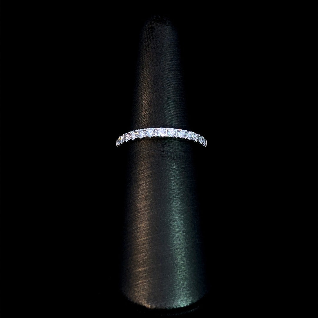 Upgrade your jewelry collection with our elegant diamond band. Made from 14kt white gold with .34ctw of sparkling round diamonds, this classic piece will add a touch of luxury to any outfit. Enhance your style with this timeless and versatile ring. This ring is a size 6.25. If that size is not a perfect fit, first time sizing is free at the time of purchase. Additional sizing fees may apply.