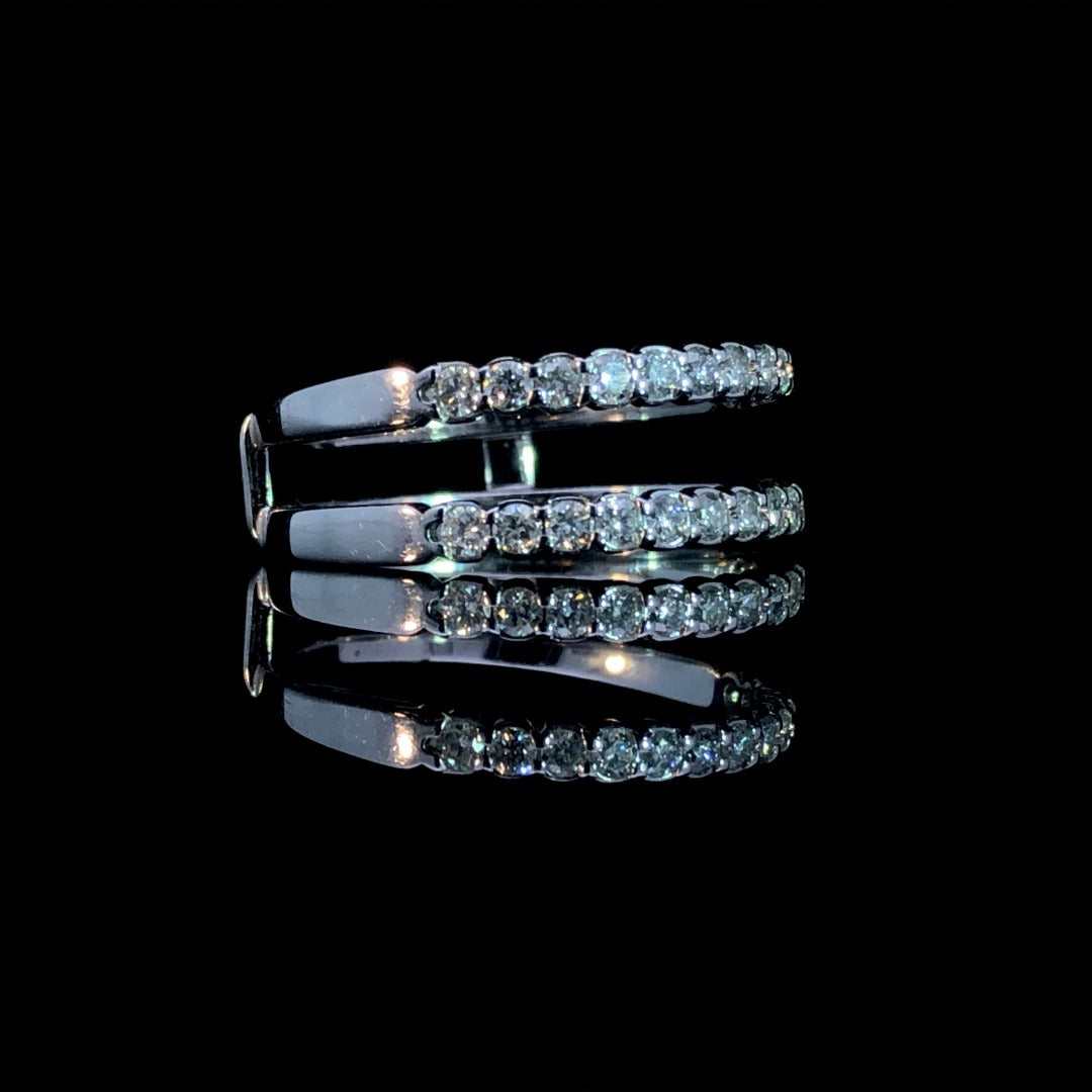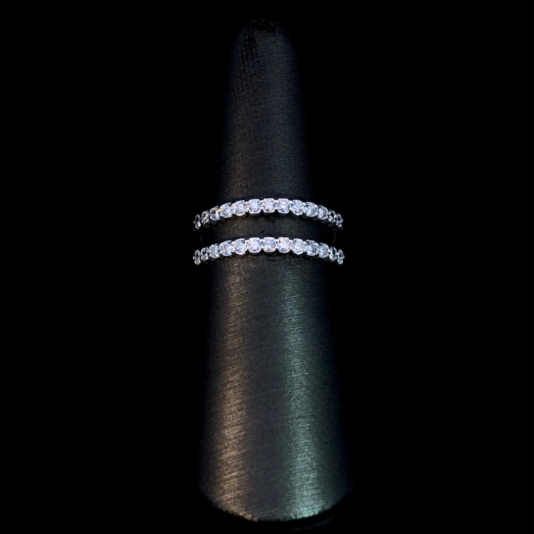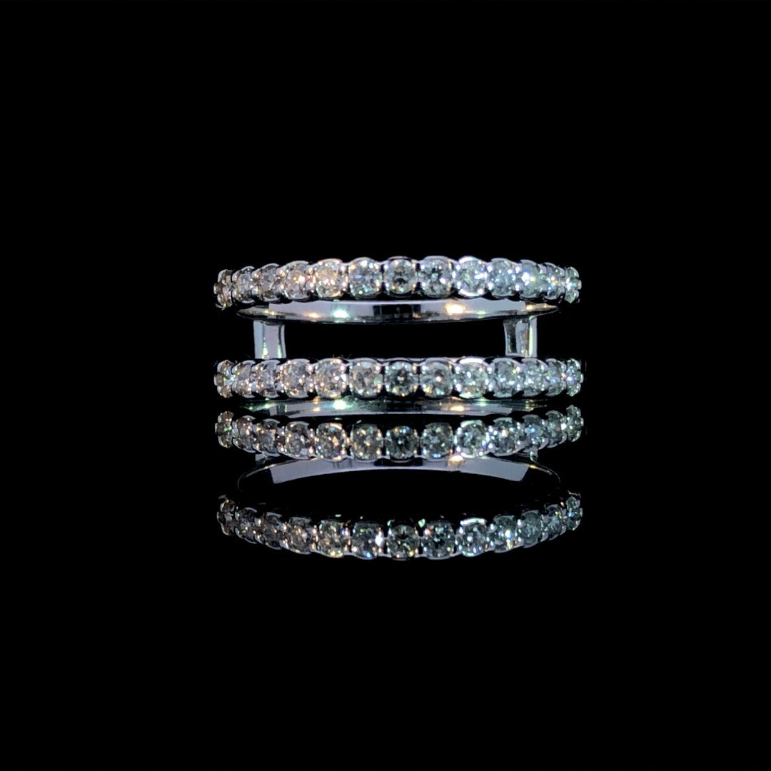 Elevate your bridal set with this elegant ring guard. Adorned with .51ctw of sparkling round diamonds, set in luxurious 14kt white gold, it adds the perfect touch of sophistication and beauty. Make a statement with this must-have addition to your collection. This ring is a size 7. If that size is not a perfect fit, first time sizing is free at the time of purchase. Additional sizing fees may apply.