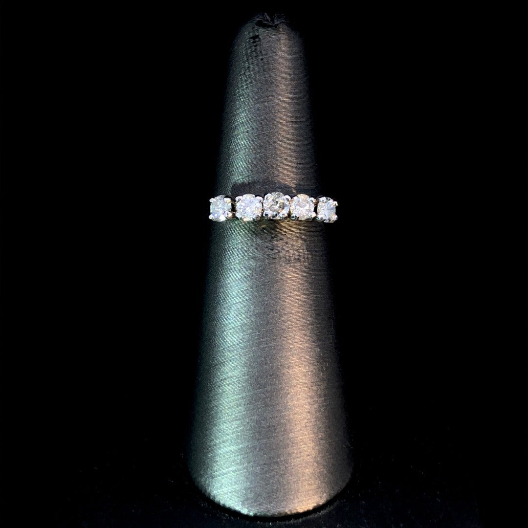 Celebrate your love with this stunning 14kt white gold anniversary band adorned with .72ctw of sparkling round diamonds. A timeless and elegant piece, perfect for marking a special occasion or just because. This ring is a size 5.75. If that size is not a perfect fit, first time sizing is free at the time of purchase. Additional sizing fees may apply.