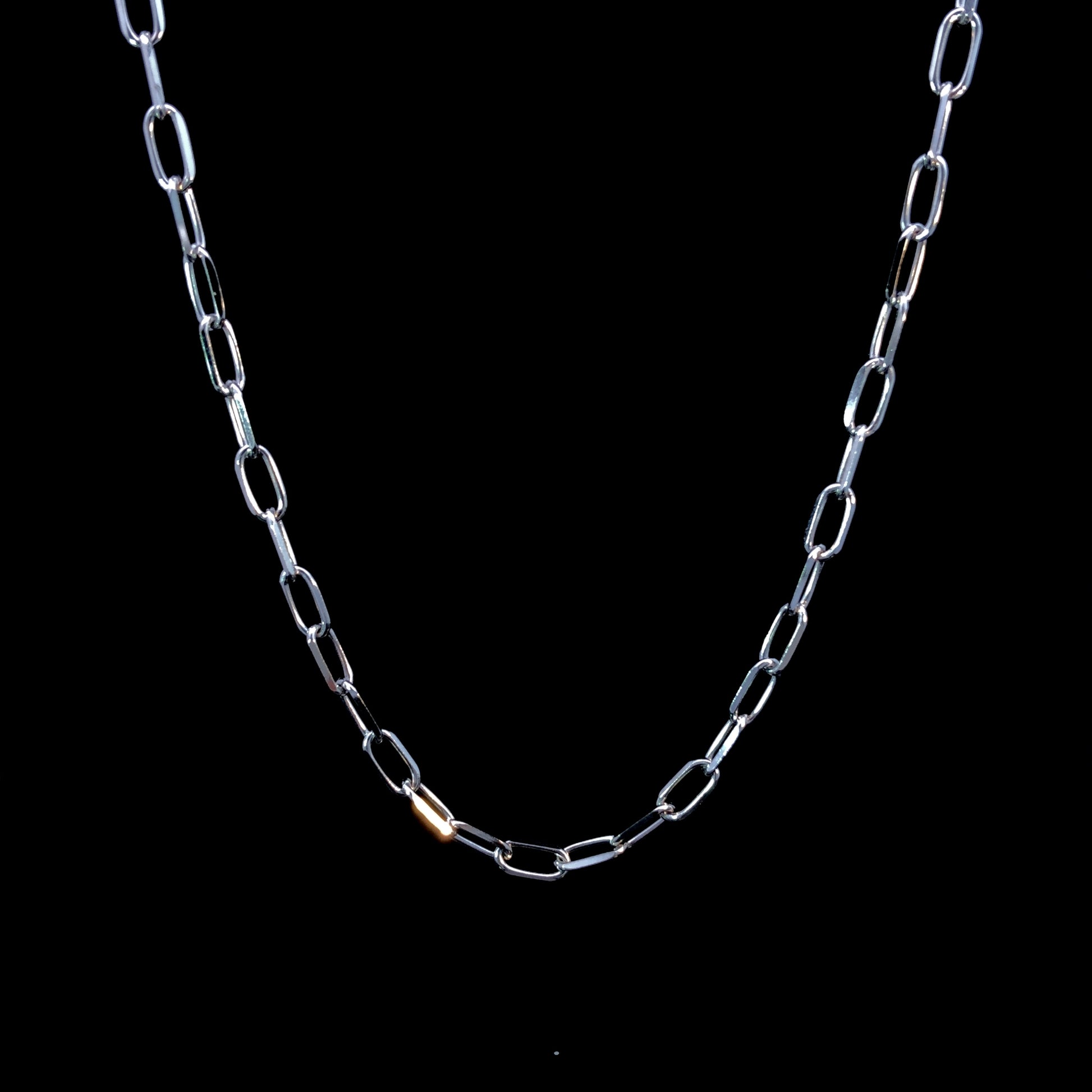 This 14kt white gold paperclip chain is a must-have for your jewelry collection. With a trendy 3.2mm width and 20-inch length, it's the perfect accessory to elevate any outfit. Ditch the traditional chain and go for something more unique with this paperclip design.