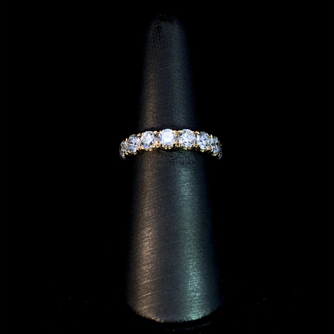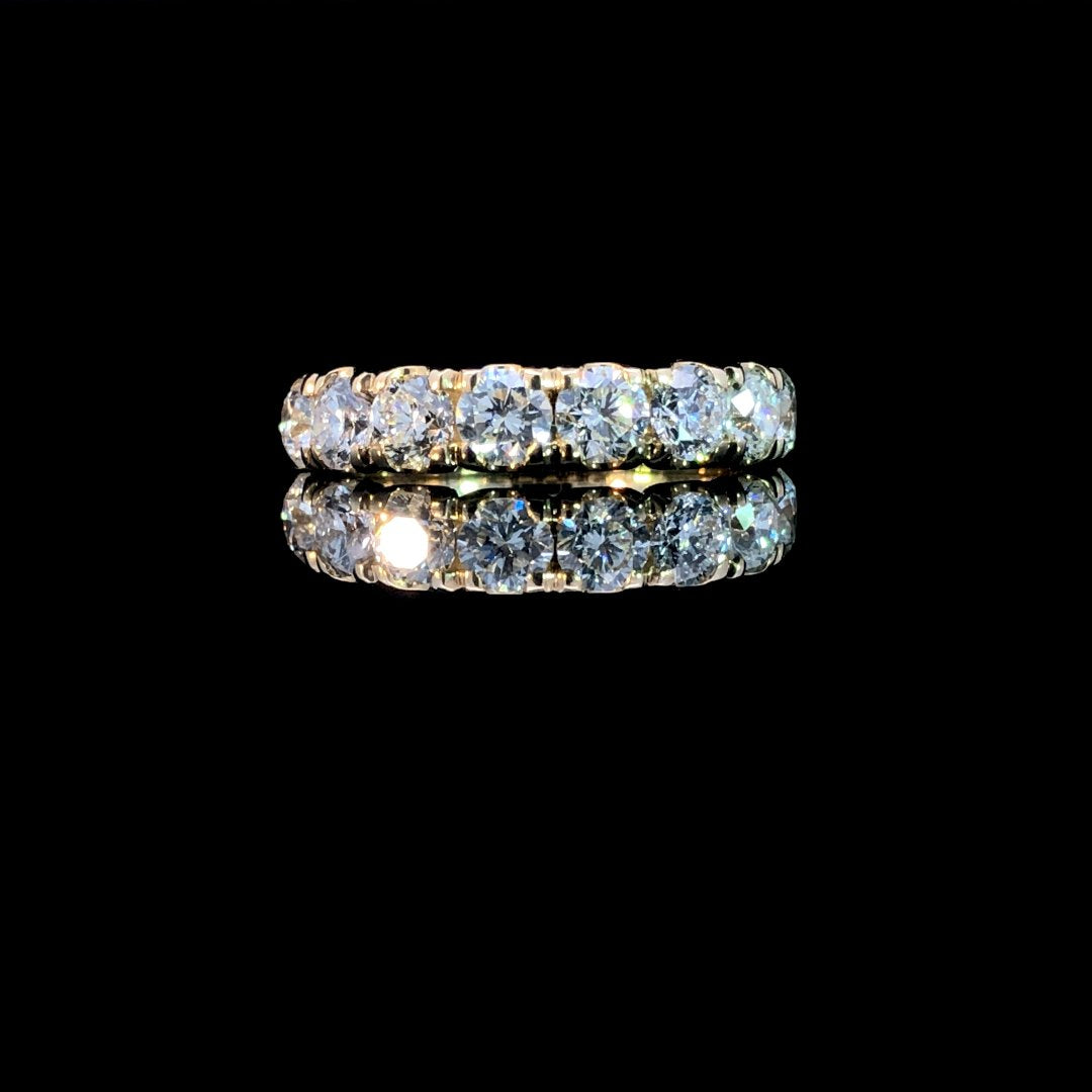 Elevate your style with this beautiful diamond band. Featuring 1.83ctw of brilliant round diamonds set in luxurious 14kt yellow gold with shared prongs, this band is sure to make a statement. A must-have addition to your collection for a touch of elegance. This ring is a size 6.5. If that size is not a perfect fit, first time sizing is free at the time of purchase. Additional sizing fees may apply.