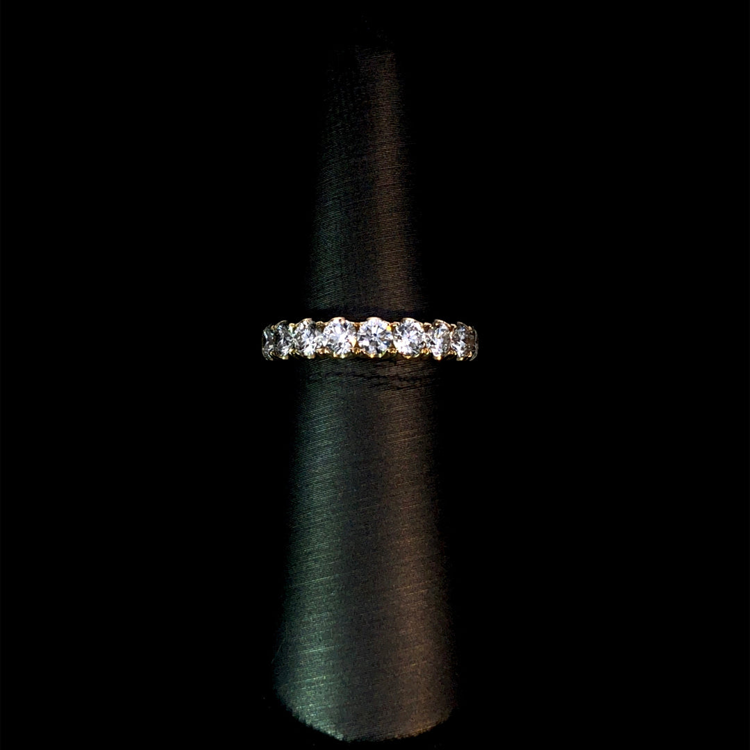 Elevate any outfit with this stunning diamond band. Crafted with 1.21ctw of round diamonds in 14kt yellow gold, it adds a touch of sparkle and luxury to any look. Perfect for special occasions or everyday wear, this elegant piece is a must-have for any jewelry collection. This ring is a size 6.5. If that size is not a perfect fit, first time sizing is free at the time of purchase. Additional sizing fees may apply.