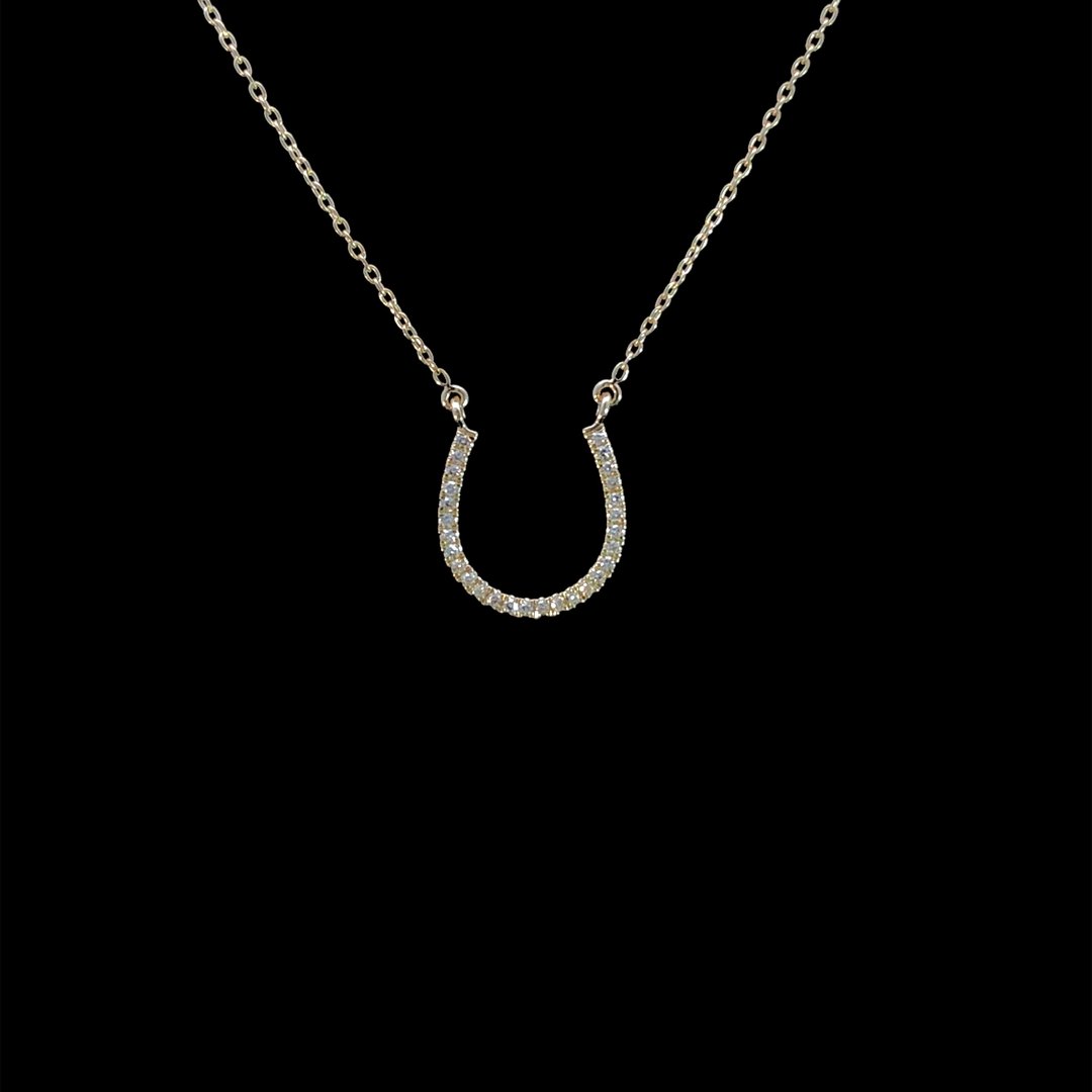 Complete your look with our stunning diamond horseshoe necklace. Crafted with .10ctw round diamonds set in 14kt yellow gold, it comes with an adjustable 18inch chain for the perfect fit.