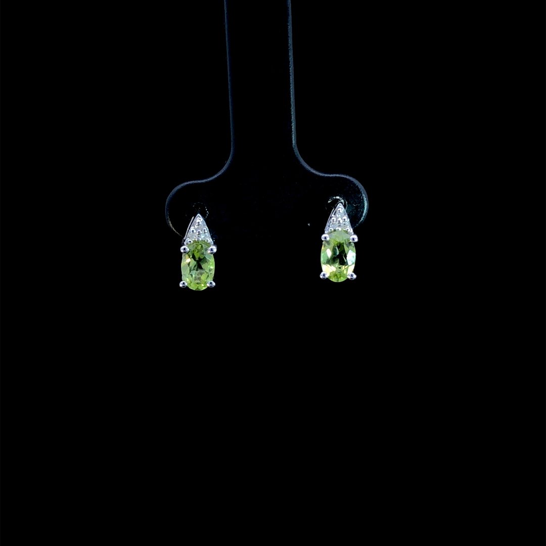 Add some sparkle to your everyday look with these oval peridot stud earrings. Featuring .03ctw of round diamond accents set in shimmering 10kt white gold, these earrings are perfect for any occasion. Elevate your style effortlessly with these elegant and timeless pieces.