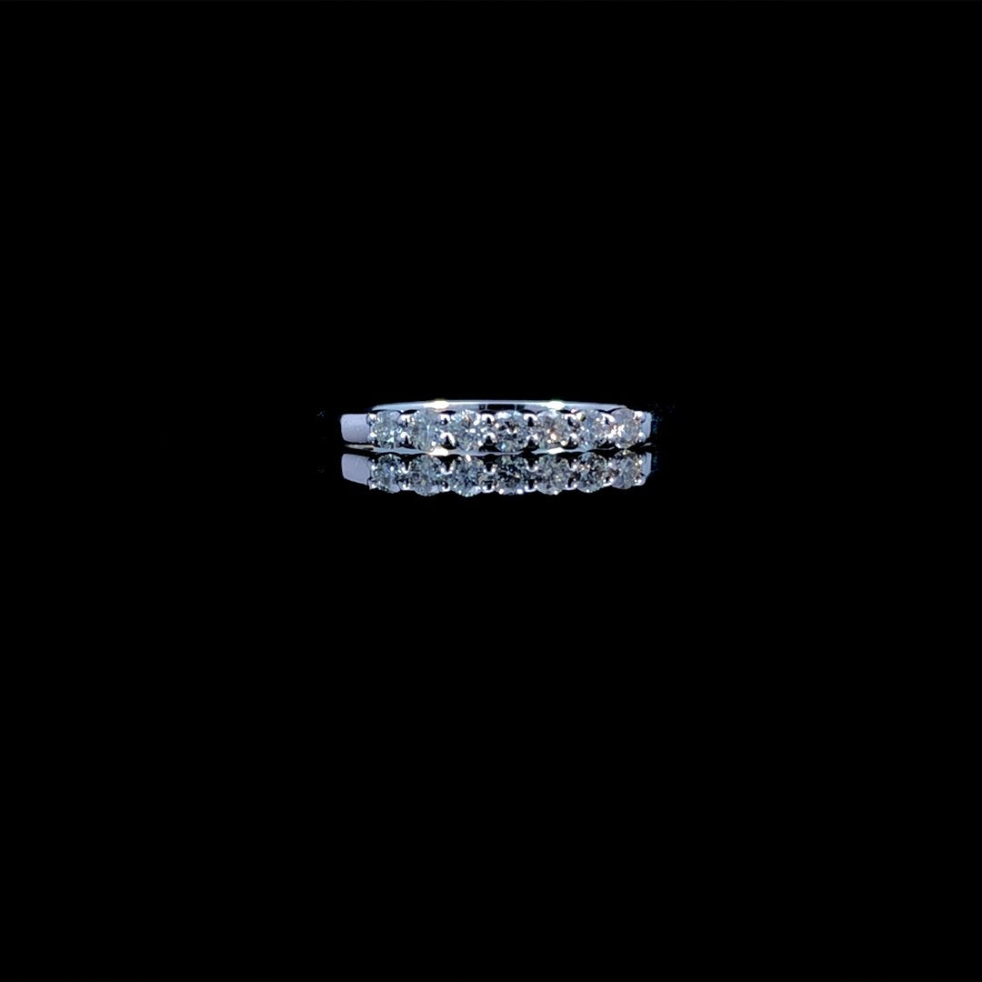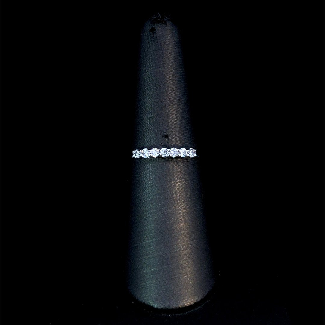 Add a touch of elegance and sophistication to your jewelry collection with this diamond band. Made with 14kt white gold and featuring .25ctw of sparkling round diamonds, this classic piece is sure to impress. Elevate your style with this stunning and timeless accessory. This ring is a size 7. If that size is not a perfect fit, first time sizing is free at the time of purchase. Additional sizing fees may apply.