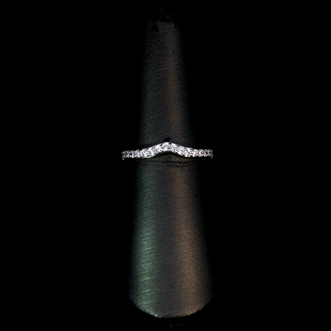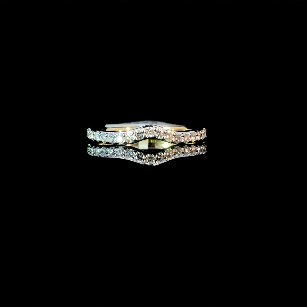 Upgrade your jewelry collection with this elegant band. Crafted in 14kt yellow gold, this curved band features .36ctw of sparkling round diamonds. Perfect for adding a touch of sophistication to any outfit. This ring is a size 7. If that size is not a perfect fit, first time sizing is free at the time of purchase. Additional sizing fees may apply.