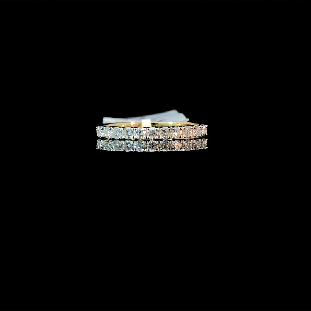 Elevate your style with this timeless diamond band. Crafted with 14kt yellow gold, this band features .25ctw of sparkling round diamonds. Perfect for adding a touch of elegance to any outfit, this band will become a staple in your jewelry collection. This ring is a size 7. If that size is not a perfect fit, first time sizing is free at the time of purchase. Additional sizing fees may apply.