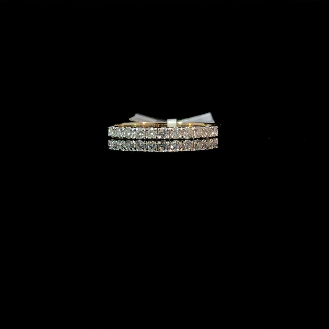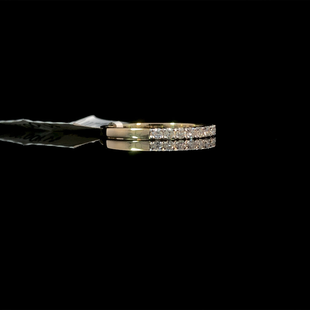 Elevate your style with the timeless beauty of this diamond band. Crafted with 14kt yellow gold, this piece sparkles with .25ctw of round diamonds. Perfect for stacking or wearing alone, it adds a touch of elegance to any look. A must-have for any jewelry collection! This ring is a size 7. If that size is not a perfect fit, first time sizing is free at the time of purchase. Additional sizing fees may apply.