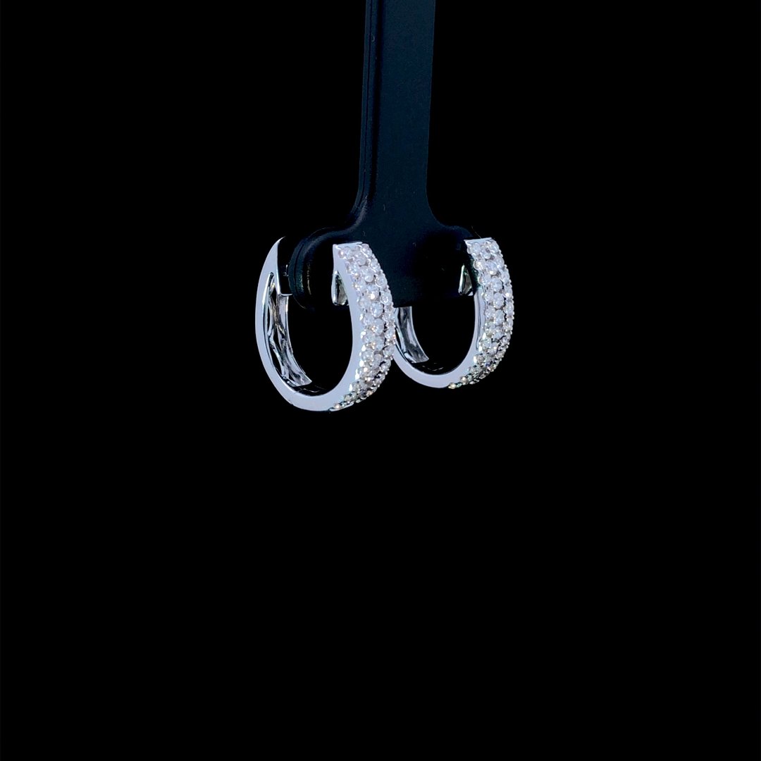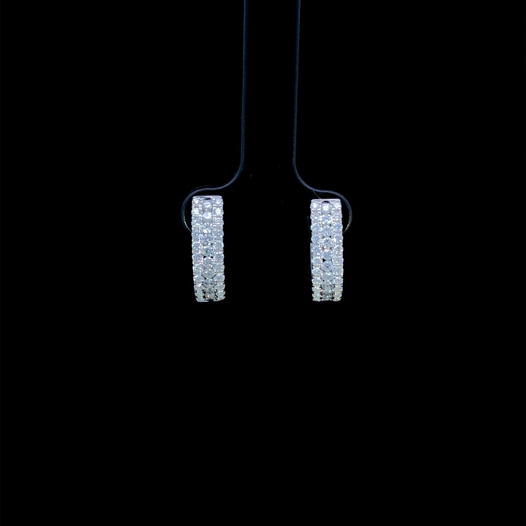 Upgrade your jewelry collection with these stunning 14kt white gold diamond hoops. Featuring a triple row design and a total carat weight of .75ctw, these hoops will add a touch of elegance and luxury to any outfit. Elevate your style and make a statement with these beautiful diamond hoops.