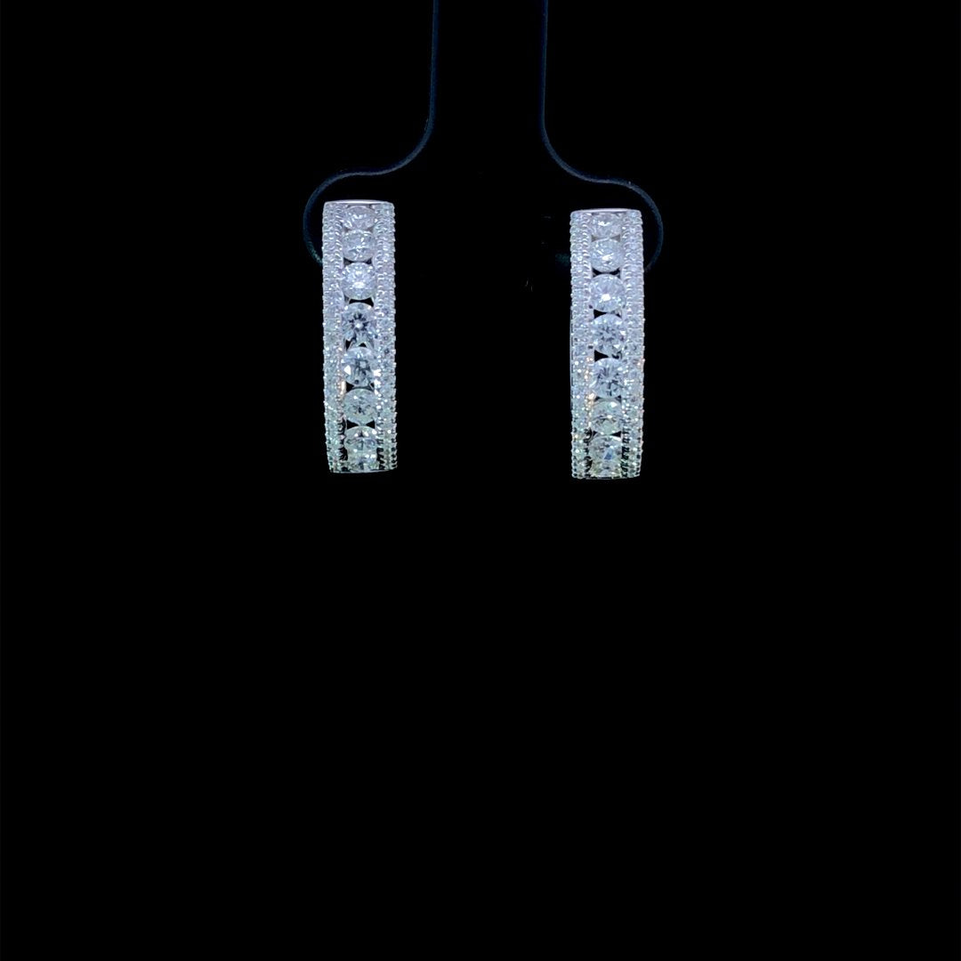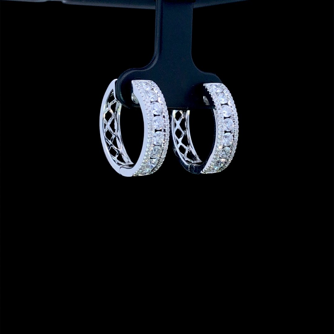 Elevate any outfit with these stunning diamond hoop earrings. Made with 14kt white gold and 1.50ctw of round diamonds, these earrings will add a touch of elegance and sparkle to any occasion. Perfect for any fashion-forward individual looking for a timeless accessory.