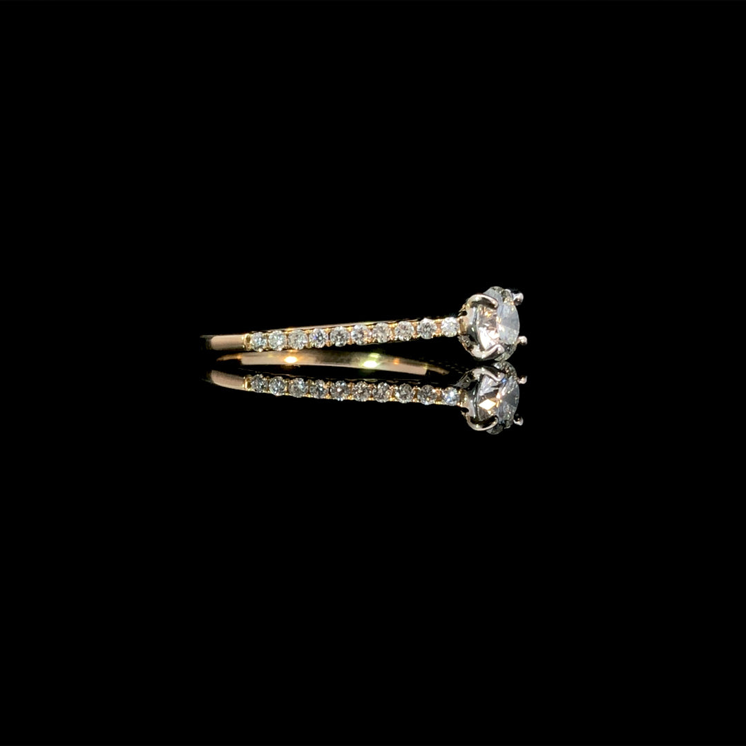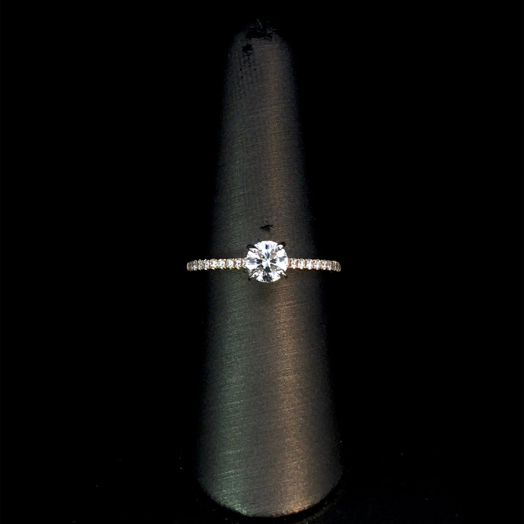Make your proposal unforgettable with this classic diamond engagement ring. Featuring a certified .53ct round diamond and .20ctw of round diamonds cascading down the cathedral style band, all set in 14kt yellow gold. This ring is a size 7.5. If that size is not a perfect fit, first time sizing is free at the time of purchase. Additional sizing fees may apply.