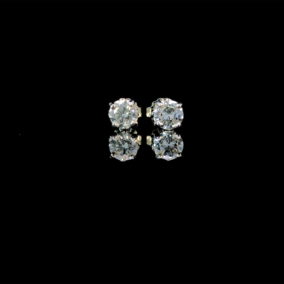 These classic diamond studs feature .95ctw of sparkling round diamonds set in elegant 14kt white gold scroll mountings, making them a versatile and luxurious choice for any occasion. Elevate your look with these exquisite earrings today!