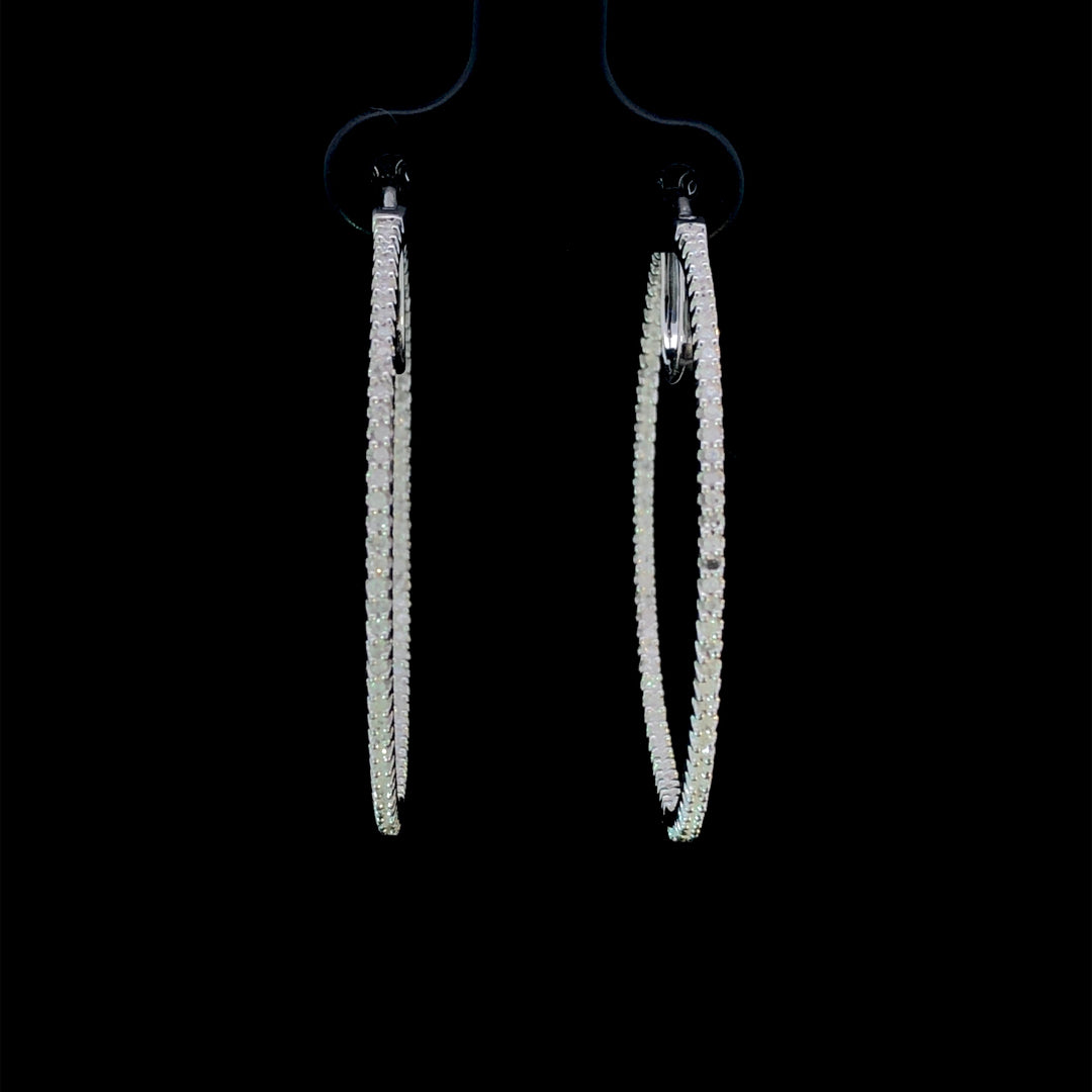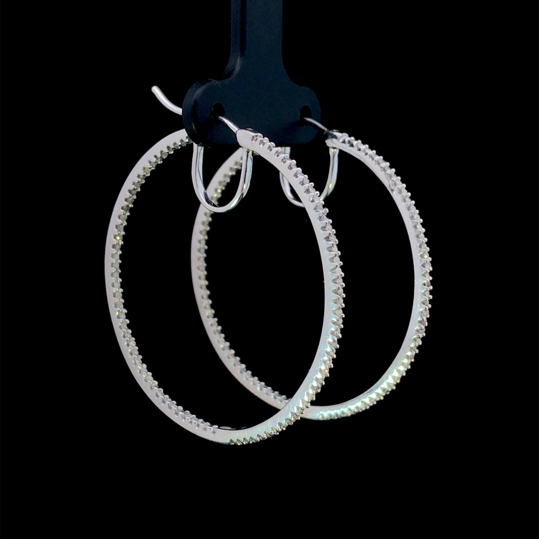These inside out hoop earrings are an elegant addition to any outfit. Made with 14kt white gold and .80ctw of round diamonds, they add a touch of sparkle and sophistication. Perfect for any occasion, these earrings will elevate your style.