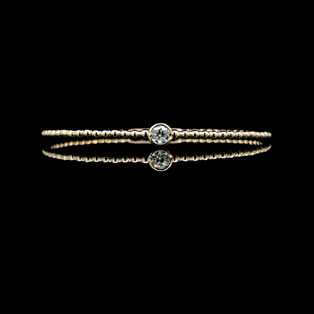 Add a touch of sparkle to your outfit with this bubble flex bangle. Featuring a .30ct round diamond bezel set in 14kt yellow gold, this bangle is perfect for stacking or wearing alone for a simple, elegant look.