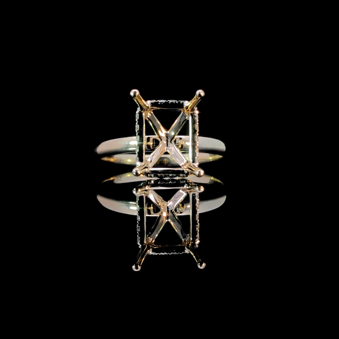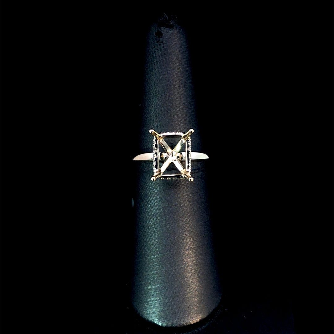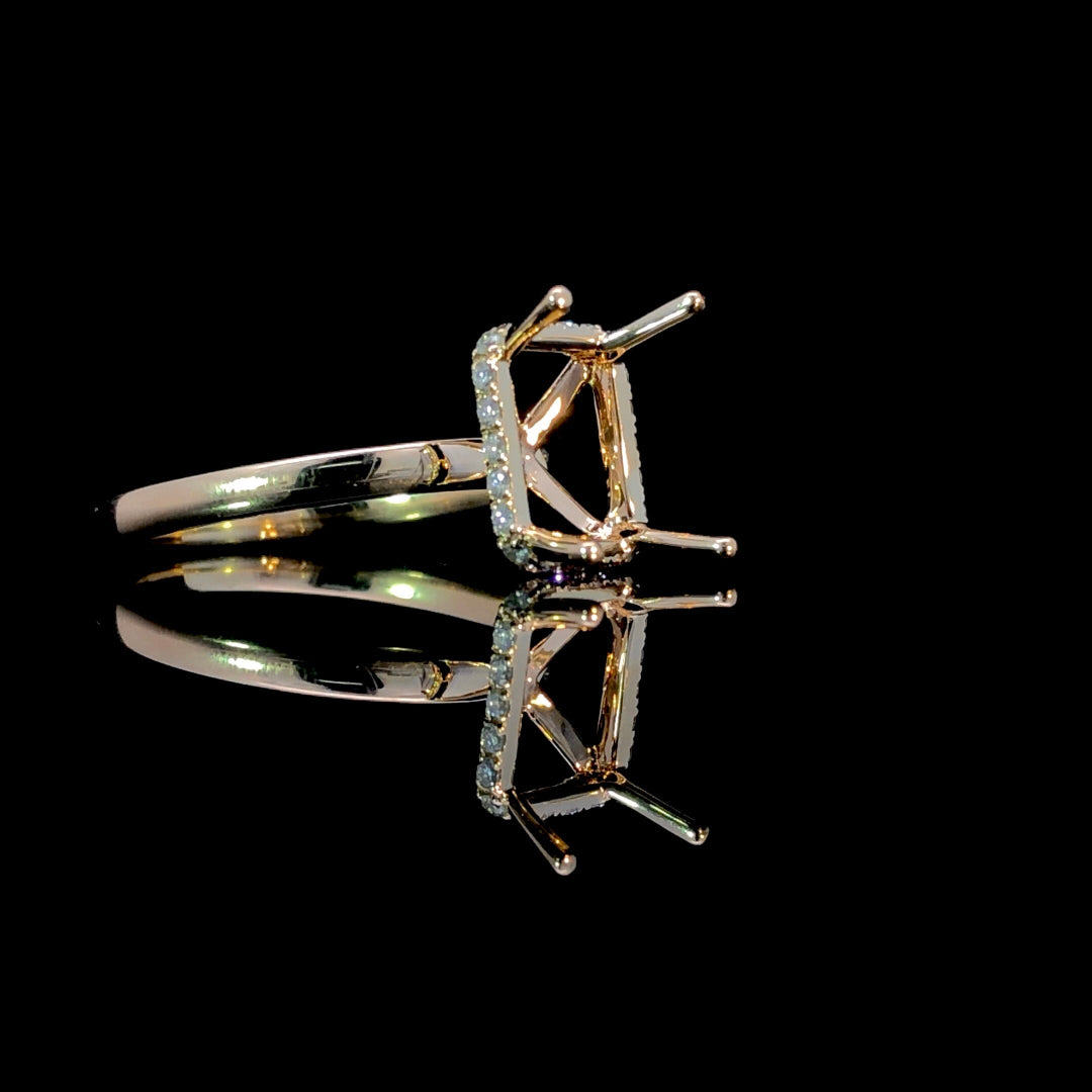 This chic diamond semi-mount showcases a hidden halo with .18 carats of round diamonds set on a smooth 14kt yellow gold band. It provides an elegant and subtle sparkle, making it the perfect base for your chosen center stone. Select your favorite from our collection to complete this stunning and personalized piece. Price is for the semi mount only. Center stone will be added at an additional cost. This ring is a size 6.5. If that size is not a perfect fit, first time sizing is free at the time of purchase. Additional sizing fees may apply.
