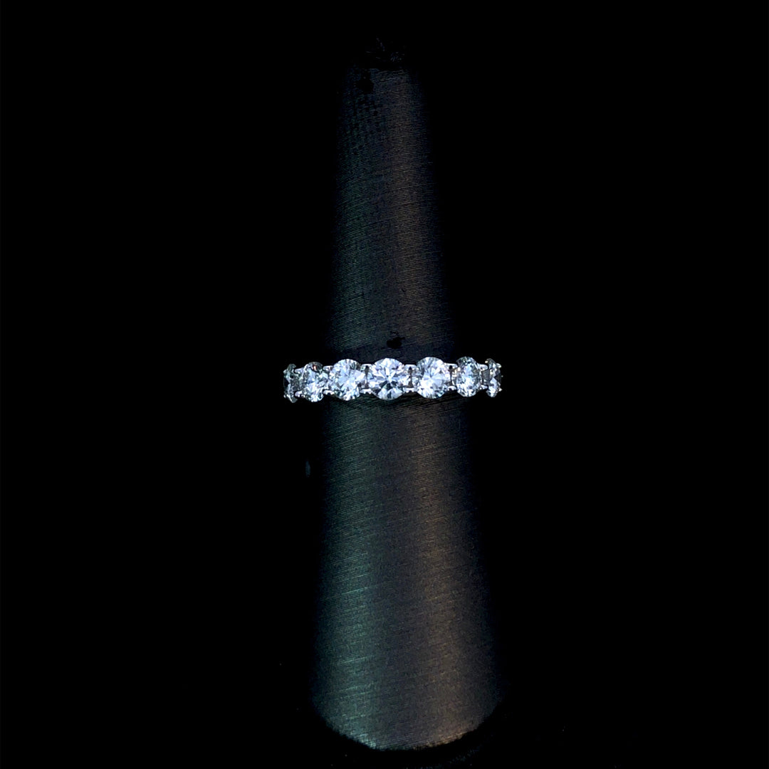 This stunning diamond band features 1.50ctw of round diamonds set in 14kt white gold, offering a brilliant sparkle that enhances any look. Its classic design provides both elegance and durability, making it an ideal choice for daily wear or special moments. This ring is a size 7. If that size is not a perfect fit, first time sizing is free at the time of purchase. Additional sizing fees may apply.