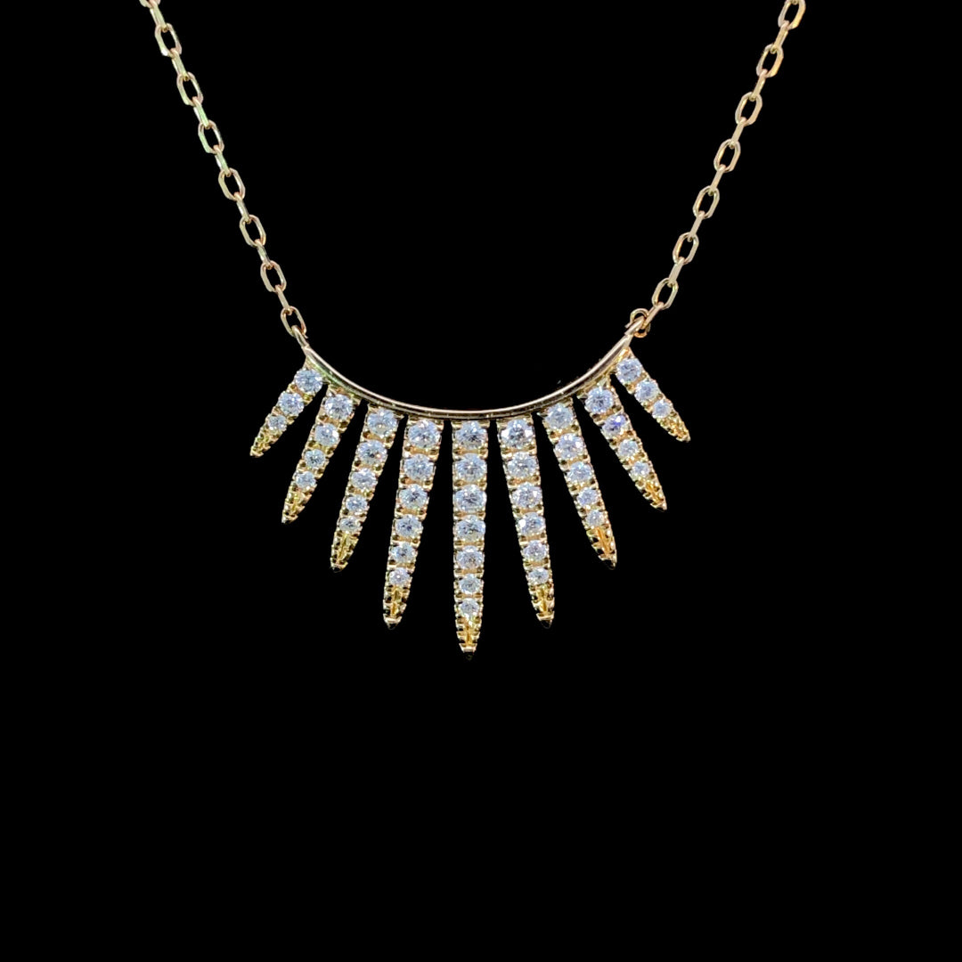 This unique necklace showcases .50ctw of round diamonds set in 14kt yellow gold. With an adjustable 18-inch chain, it offers versatility for effortless stacking and layering, making it a stunning addition to any jewelry collection.