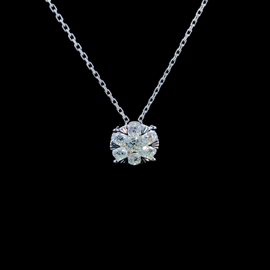 This classic diamond cluster necklace shines with a total of .83ctw of sparkling round diamonds. Its adjustable 18-inch chain ensures a comfortable, customizable fit, making it a versatile and elegant addition to any jewelry collection. Perfect for adding a touch of timeless brilliance to your everyday look or special moments.