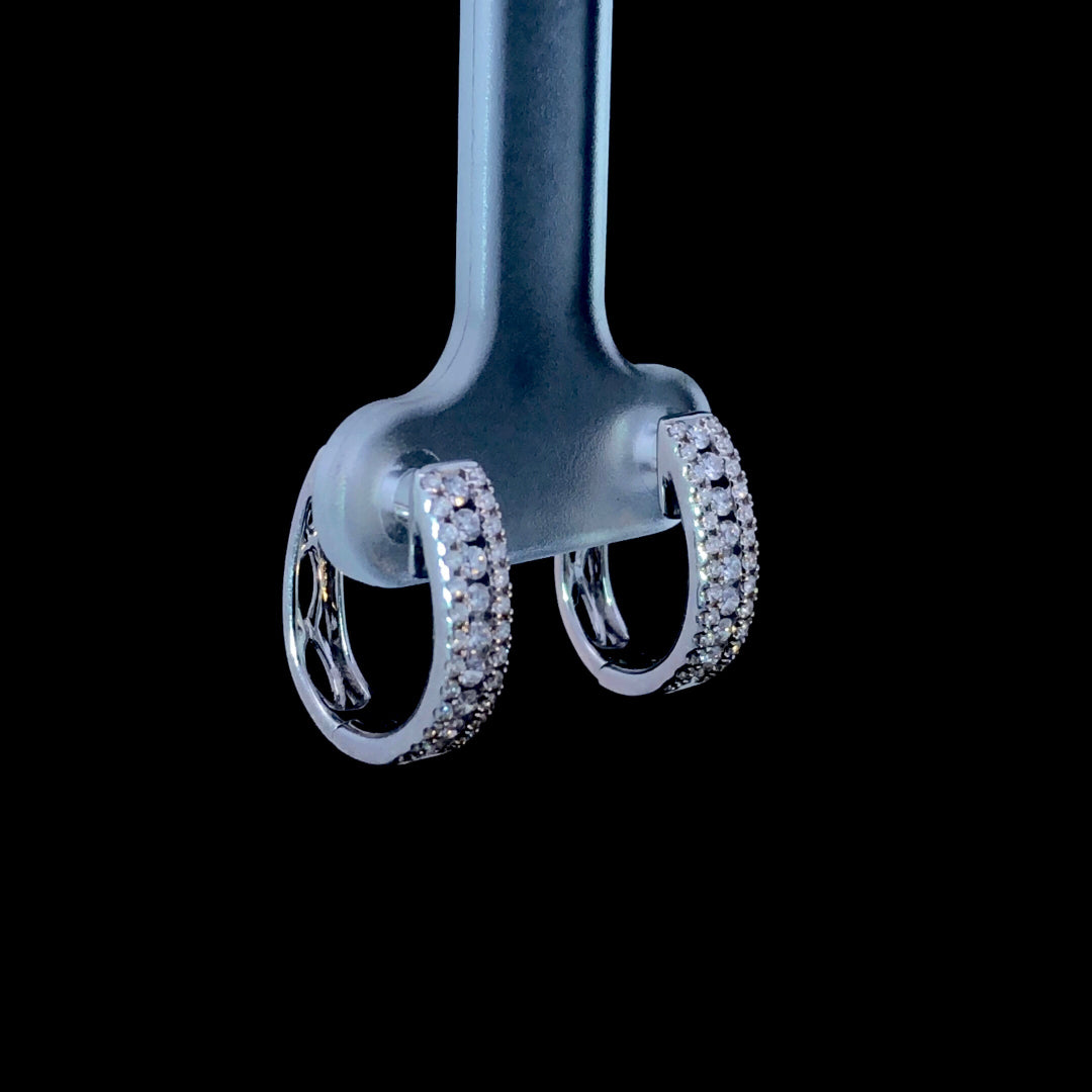 These small hoop earrings feature 0.40ctw of round diamonds set in 14kt white gold, offering a delicate sparkle that enhances any outfit. Their classic design provides a versatile and elegant accessory you can wear comfortably every day.