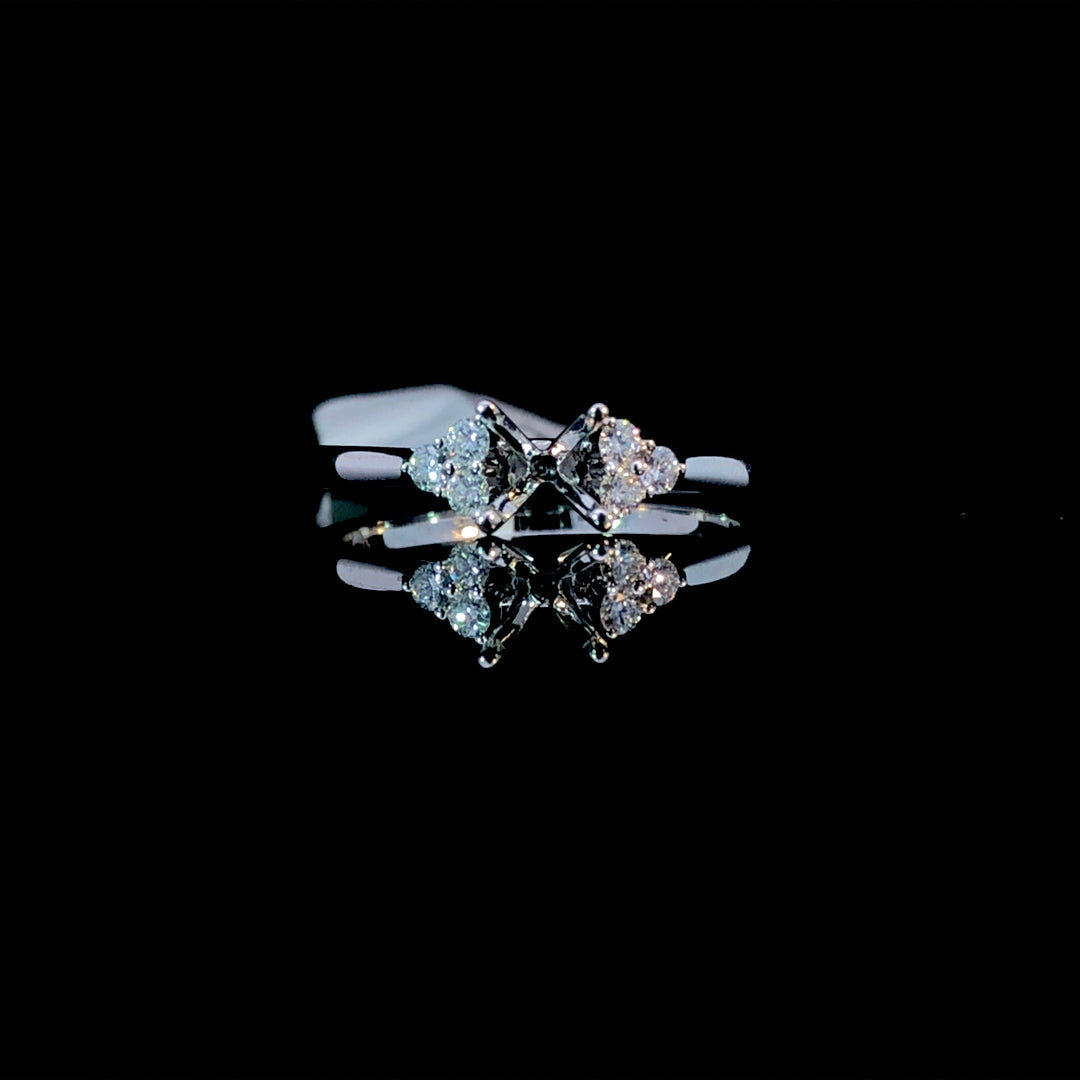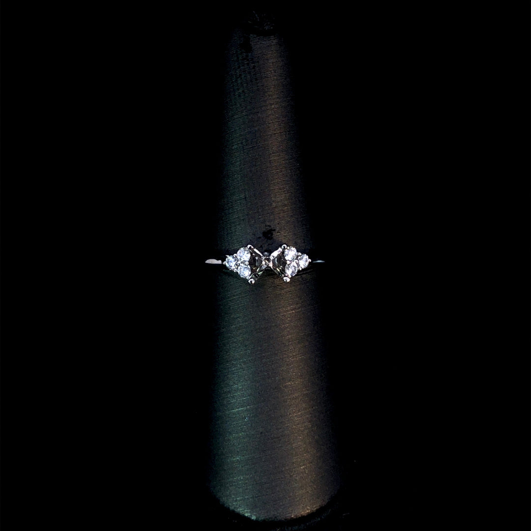 This classic diamond semi mount showcases round diamond side stones arranged in a trillion shape, totaling .10 ctw, set in 14kt white gold. Personalize this elegant piece by choosing your ideal center stone from our unmatched selection of loose stones to create a truly unique ring. Price is for the semi mount only. Center stone will be added at an additional cost. This ring is a size 7. If that size is not a perfect fit, first time sizing is free at the time of purchase. Additional sizing fees may apply.