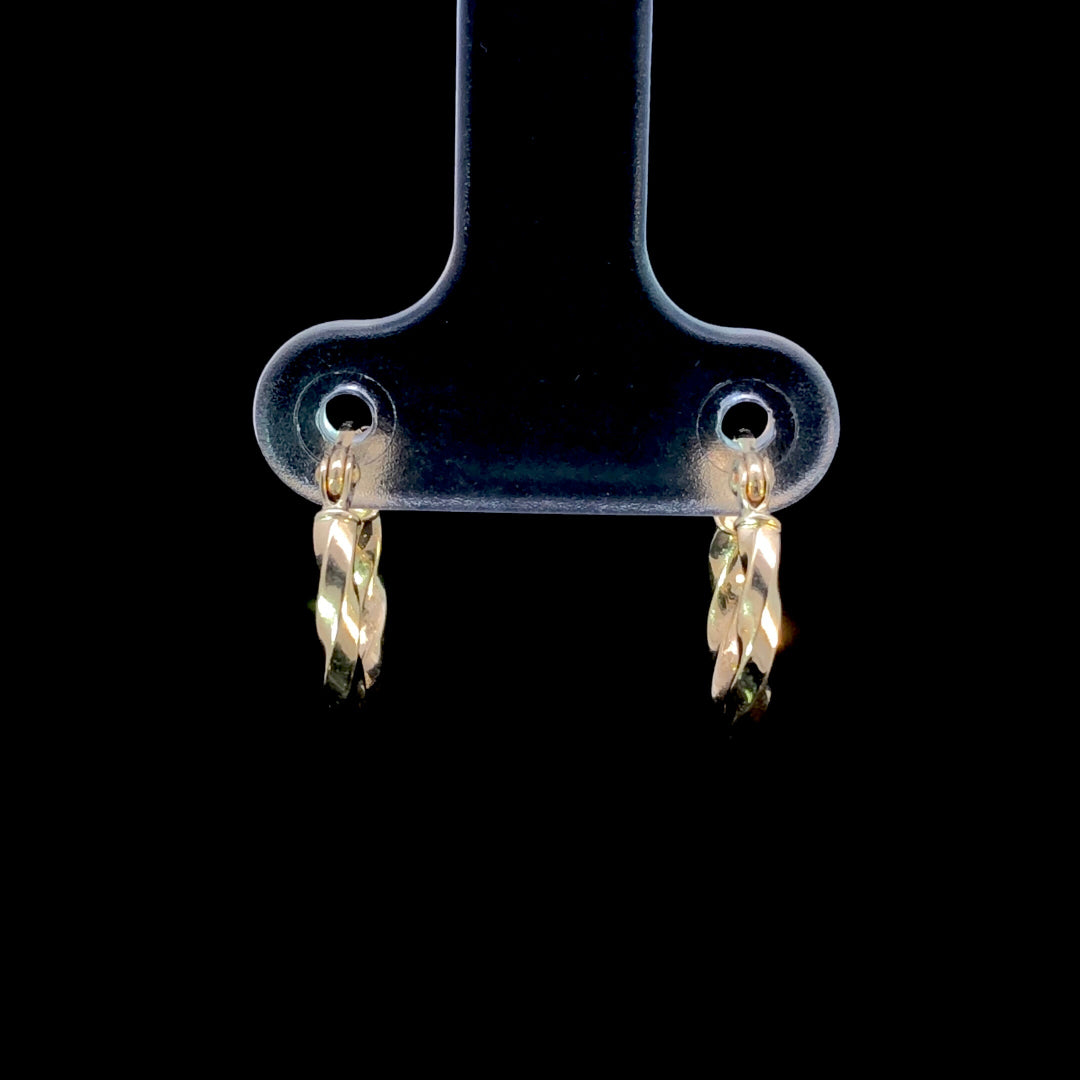 These small 10kt yellow gold hoop earrings feature a delicate twist design that adds subtle elegance to your look. Perfect for everyday wear, they offer a comfortable fit while enhancing your style with a touch of refined detail.