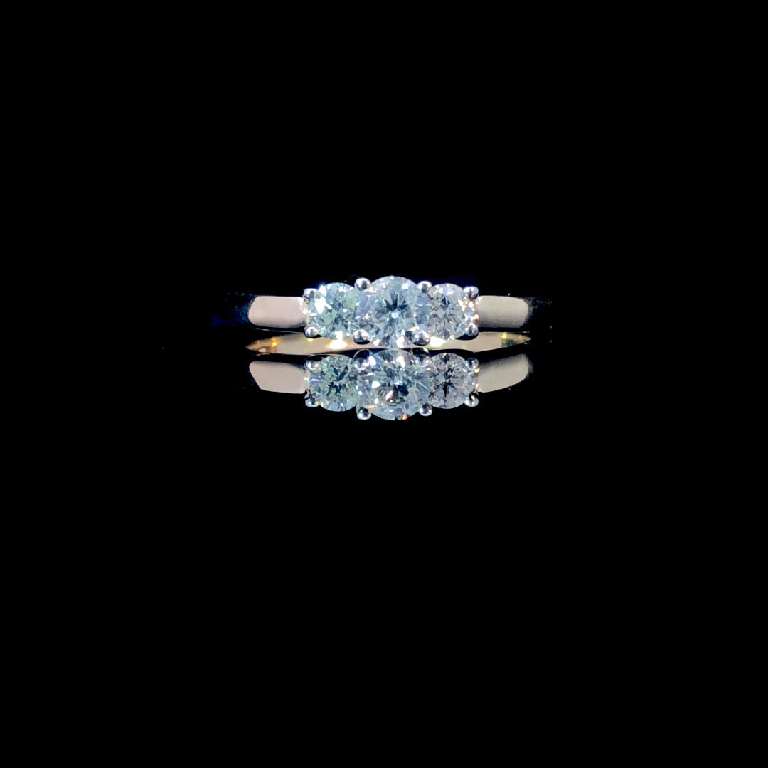 Celebrate your journey with this elegant 3-stone ring, featuring three round diamonds totaling 0.47ctw. Set in two-tone 14kt gold, this classic design beautifully represents your past, present, and future. This ring is a size 7. If that size is not a perfect fit, first time sizing is free at the time of purchase. Additional sizing fees may apply.