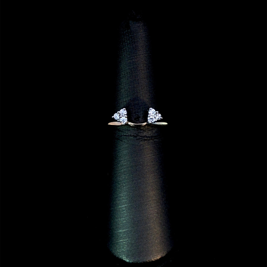 Enhance your solitaire with this timeless ring wrap featuring .15 ctw of round diamonds arranged in a striking trillion pattern on each side. Crafted in elegant two-tone 14kt gold, it adds a unique touch to your favorite ring. This ring is a size 6.5. If that size is not a perfect fit, first time sizing is free at the time of purchase. Additional sizing fees may apply.