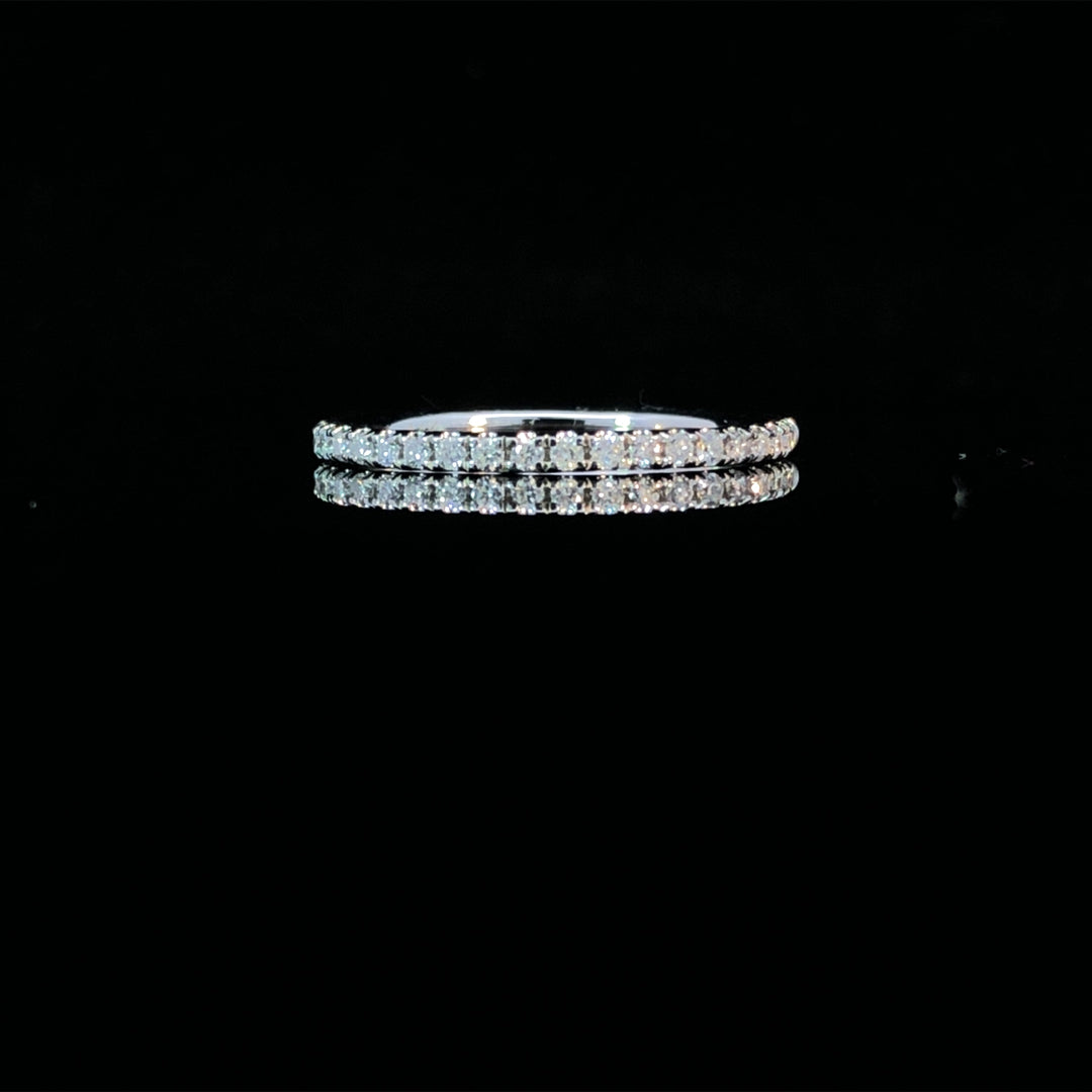 This elegant band features .20ctw of round diamonds set in 14kt white gold, providing a delicate sparkle that complements any outfit. Its timeless design makes it an easy choice to enhance your jewelry collection with understated beauty. This ring is a size 6.5. If that size is not a perfect fit, it can be sized up 2 sizes for free at the time of purchase. Additional sizing fees may apply.