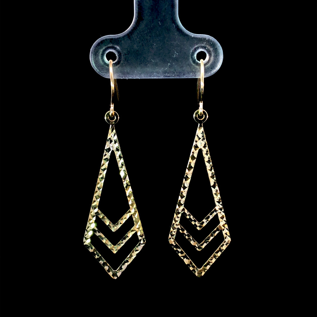 Add a touch of sophistication to any ensemble with these 14kt yellow gold dangle earrings. Their intricate design, enhanced by diamond-cut details, catches the light beautifully, creating subtle sparkle and effortless elegance for any occasion.