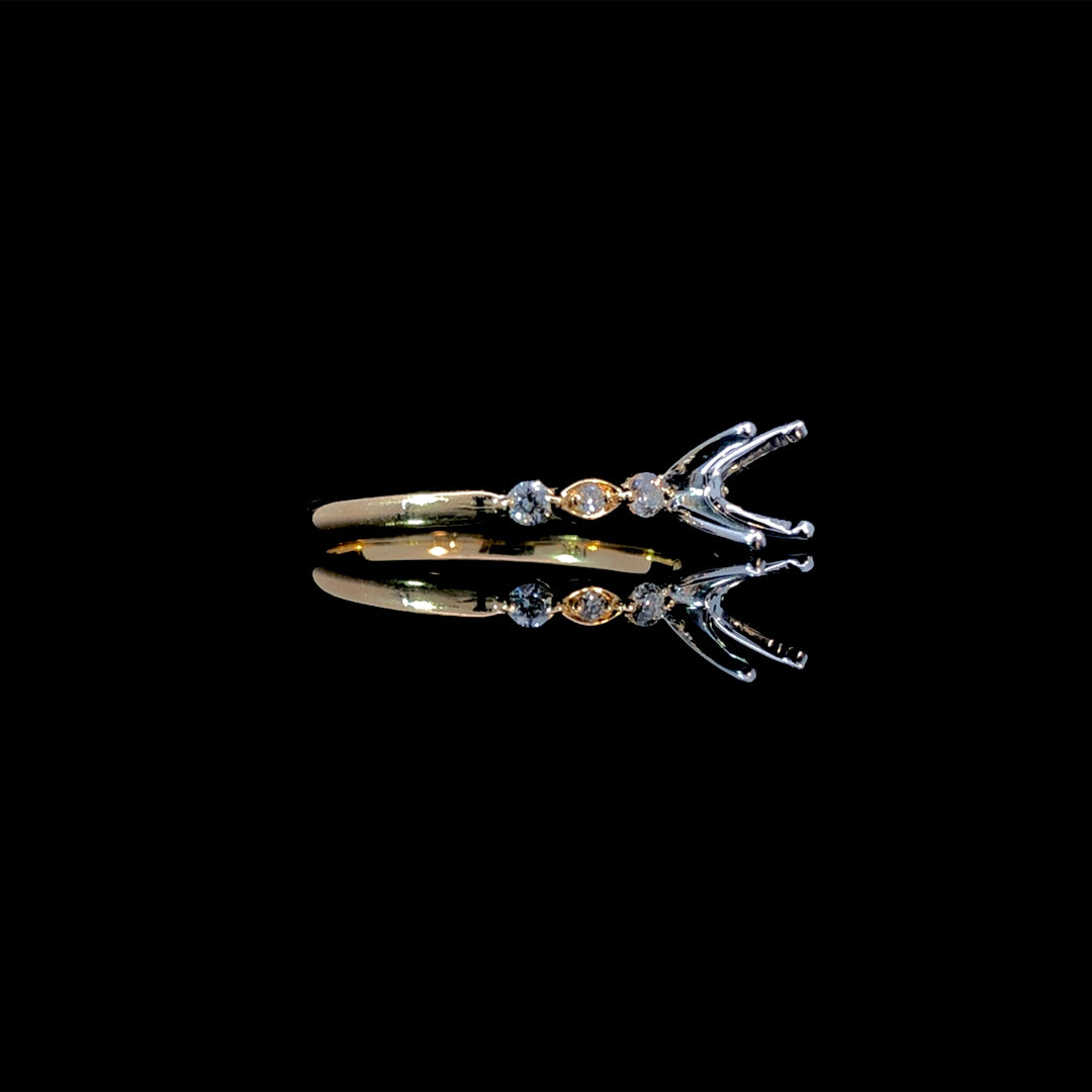 This chic semi mount showcases .17ctw of sparkling round diamonds set in a contemporary design, crafted in 14kt yellow gold. The versatile setting invites you to select your own center stone from our curated collection of loose diamonds, allowing you to create a truly personalized engagement ring or special occasion piece that reflects your unique style and vision. Price is for the semi mount only. Center stone will be added at an additional cost. This ring is a size 7.25. If that size is not a perfect fit, first time sizing is free at the time of purchase. Additional sizing fees may apply.