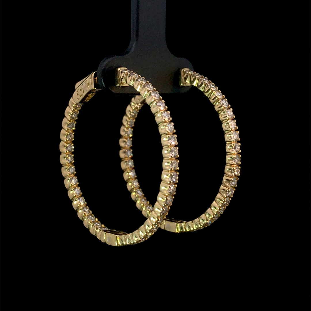 These exquisite 2.00 ctw diamond hoops bring a timeless beauty to any ensemble. Crafted with high quality diamonds, set in 14 kt yellow gold, they'll add a vibrant, luxurious touch to any occasion. Make a statement with these sophisticated, fashionable earrings.