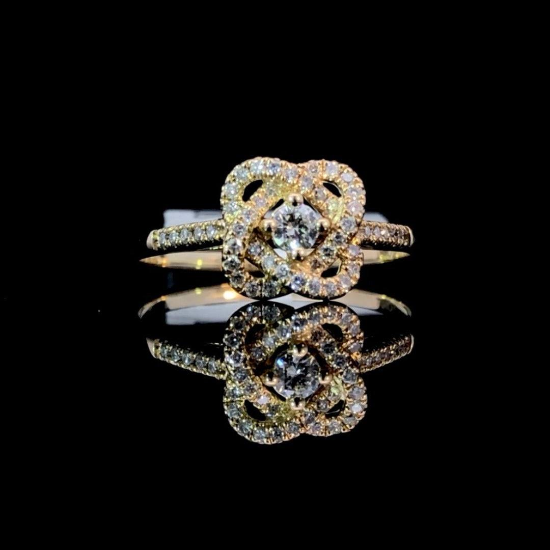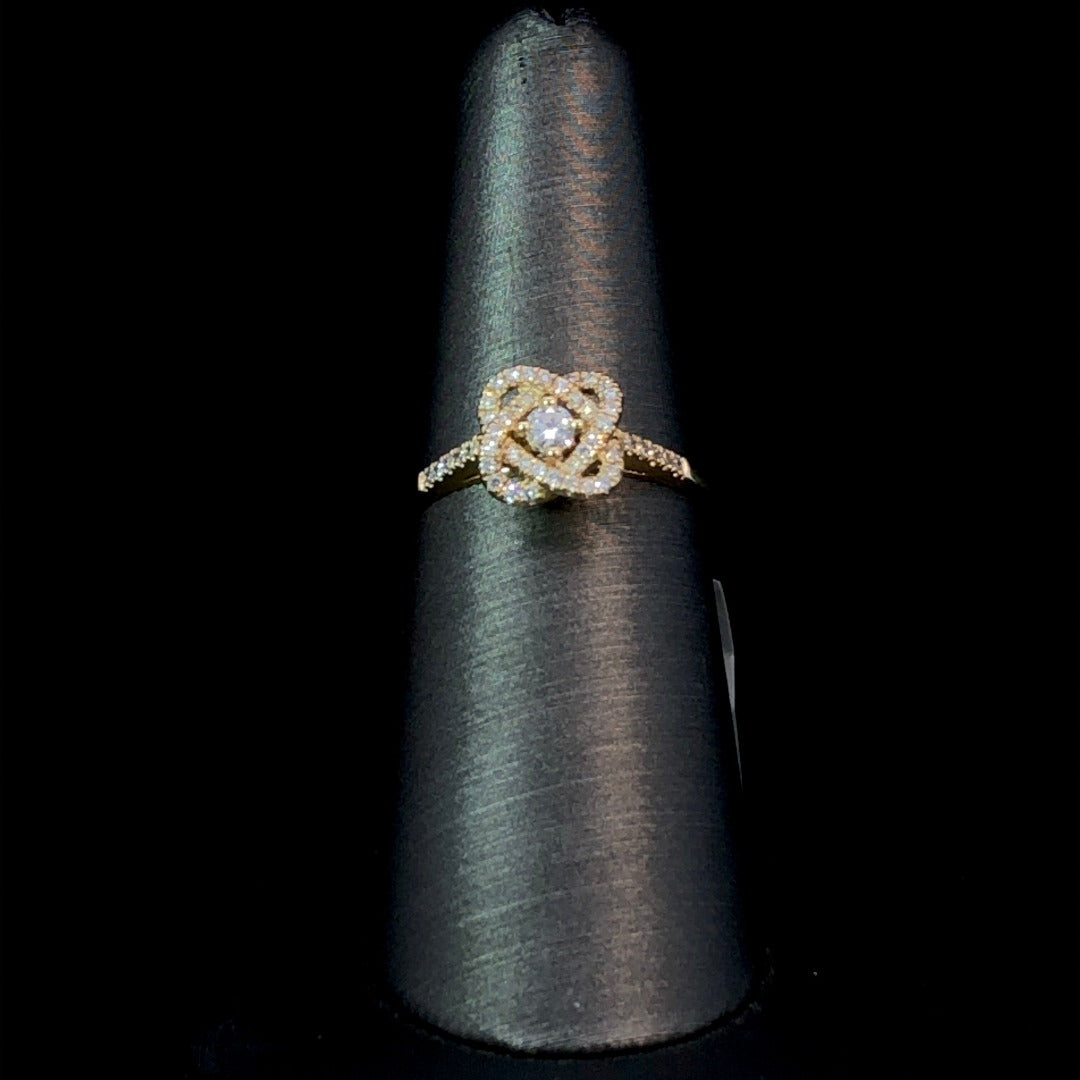 Adorn your hand with a subtle touch of luxury by adding this elegant love knot fashion ring to your collection. Crafted in 10kt yellow gold, this sophisticated design is sure to draw the eye with its shimmering .25ctw of diamonds, arranged in a classic love knot pattern and rimmed with round diamonds cascading down the band. Refine your look with this timelessly chic choice. This ring is a size 7. If that size is not a perfect fit, first time sizing is free at the time of purchase.