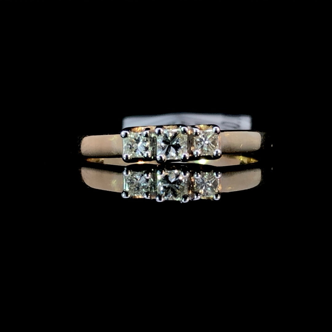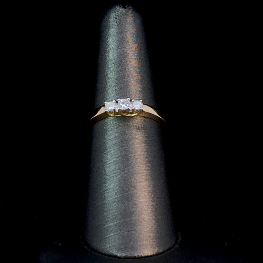 Elevate your style with this stunning 14kt yellow gold ring, featuring three dazzling princess cut diamonds totaling .25ctw. Perfect for special occasions or everyday wear, this exquisite piece adds an unforgettable sparkle to any look. This ring is a size 6.75. If that size is not a perfect fit, first time sizing is free at the time of purchase.