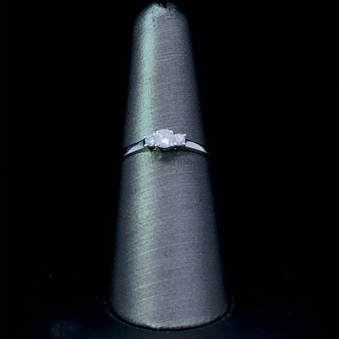 This timeless piece is sure to bring a sparkle to your look! Crafted in 14kt white gold, this 3 stone ring is adorned with .26ctw of brilliant round diamonds, for an effortlessly sophisticated style. Make a statement and shine with confidence! This ring is a size 7. If that size is not a perfect fit, first time sizing is free at the time of purchase.