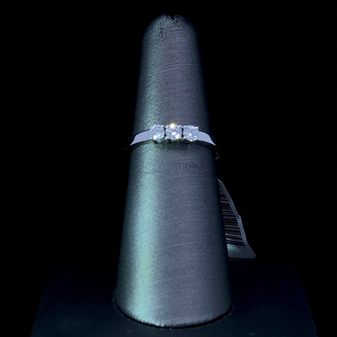 Elevate your style with this timeless 3 stone ring. Crafted from 14kt white gold and boasting .30ctw of sparkling diamonds, it symbolizes the past, present, and future of your relationship! This ring is a size 6.25. If that size is not a perfect fit, first time sizing is free at the time of purchase.