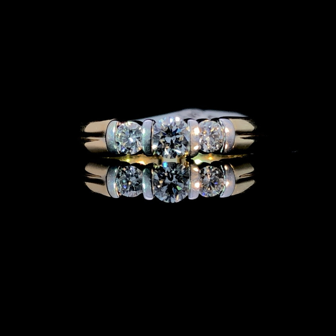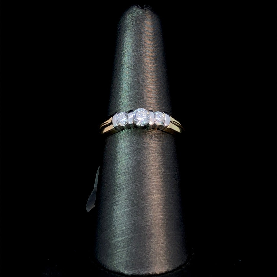 Make a stunning statement with this sophisticated two-tone anniversary band, exquisitely crafted from 14kt gold and set with .50 ctw of glistening round diamonds. Radiant and refined, it's the perfect way to honor your most special occasions. This ring is a size 7. If that size is not a perfect fit, first time sizing is free at the time of purchase.